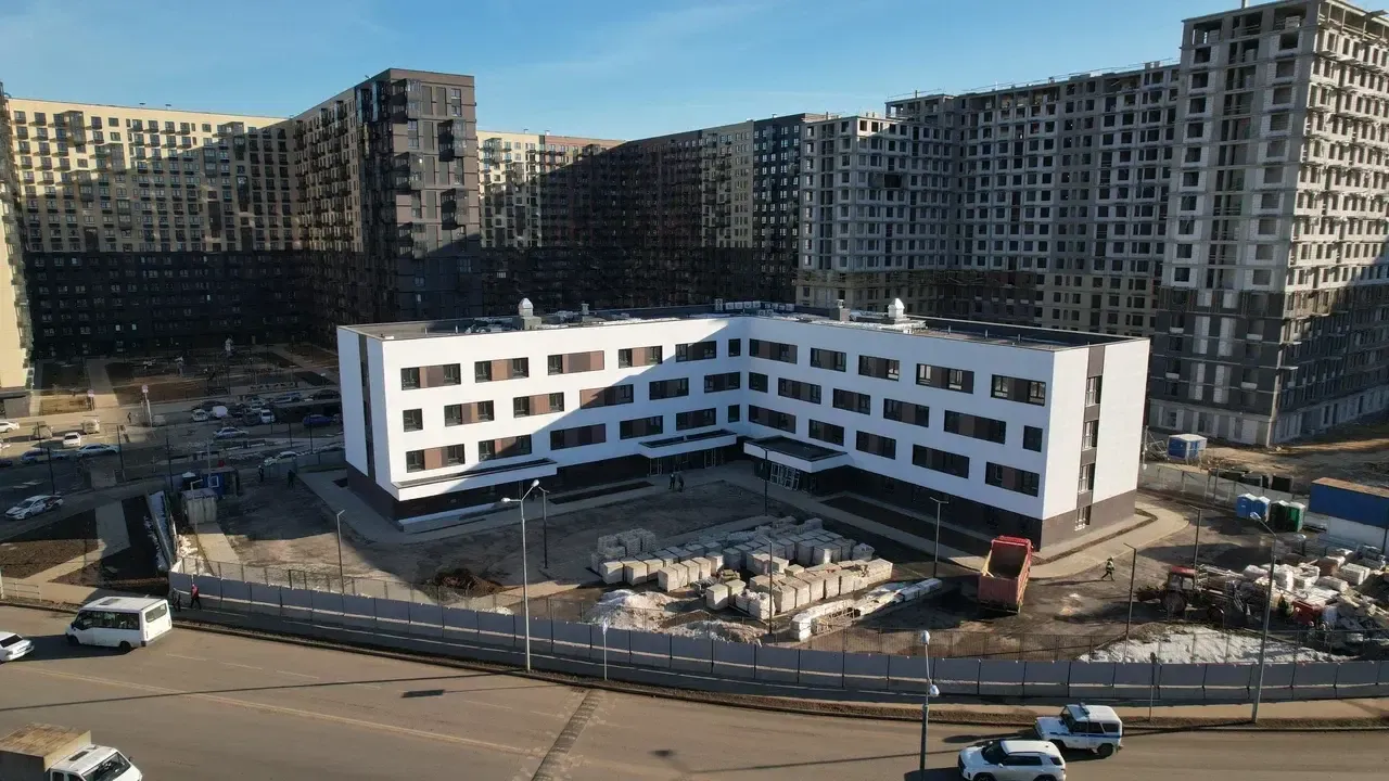 Поликлинику строят по программе комплексного развития территорий. В жилом комплексе уже открыли два детских сада и две школы.