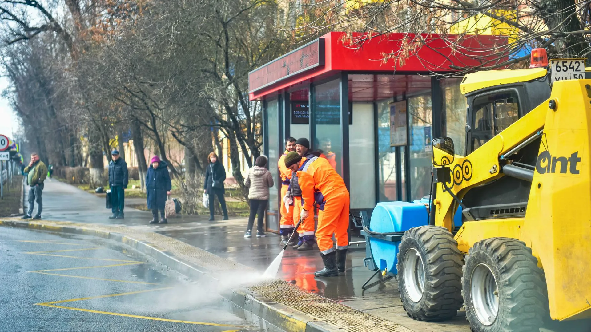 Особенно тщательно убирали проезжую часть. Отмыли остановочные павильоны, шумозащитные экраны, дорожные знаки, проверили работу светофоров. Дороги также помыли с использованием специального средства.