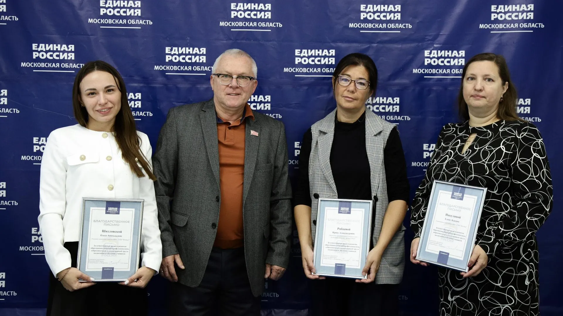 Педагоги Елена Никулина, Олеся Шидловская и Ирина Рябцева получили благодарственные письма из рук главы депутатского объединения «Единая Россия» в окружном совете Сергея Слепова. Он отметил, что День учителя является прекрасной возможностью выразить глубокую признательность людям, посвятившим себя благородному делу воспитания и образования подрастающего поколения.