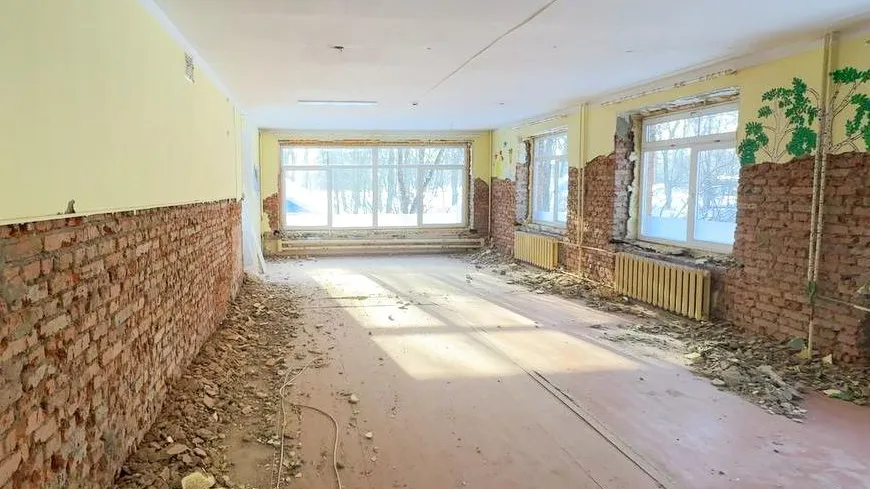 Во Фрязине продолжается капитальный ремонт дошкольного отделения средней школы № 3 имени Героя Советского Союза Александра Григорьевича Дудкина. Подрядчик ведет демонтаж и уже начал отделку.