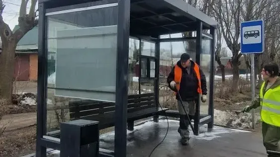 После зимы остановочные павильоны Богородского округа очищают от талого снега, пыли и грязи. Всего на балансе муниципалитета находится 151 объект.