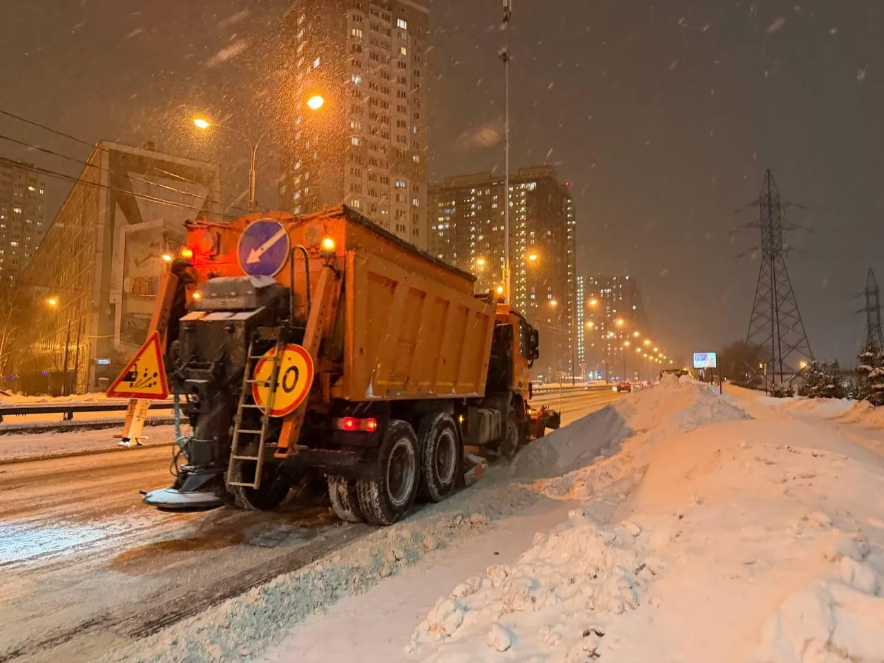 Колонна прошла по улицам клином с небольшим нахлестом и сдвинула снег к обочинам. Утром техника должна будет погрузить его и вывезти на специальные площадки за чертой города.