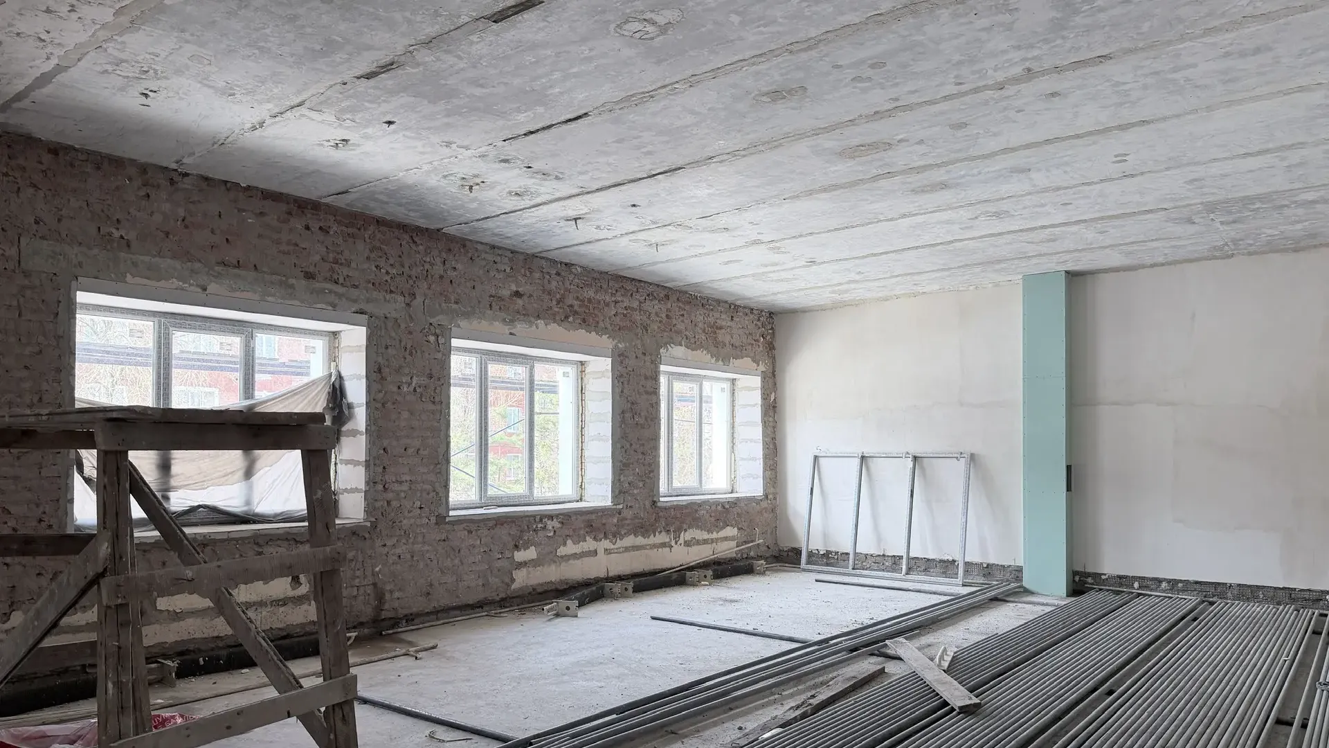 «В настоящее время на площадке работают 70 человек, одна единица техники. Строители завершают демонтажные работы, ведут общестроительные и отделочные работы, также осуществляют ремонт кровли и фасада, монтаж оконных блоков и инженерных коммуникаций», — рассказали в ведомстве.
