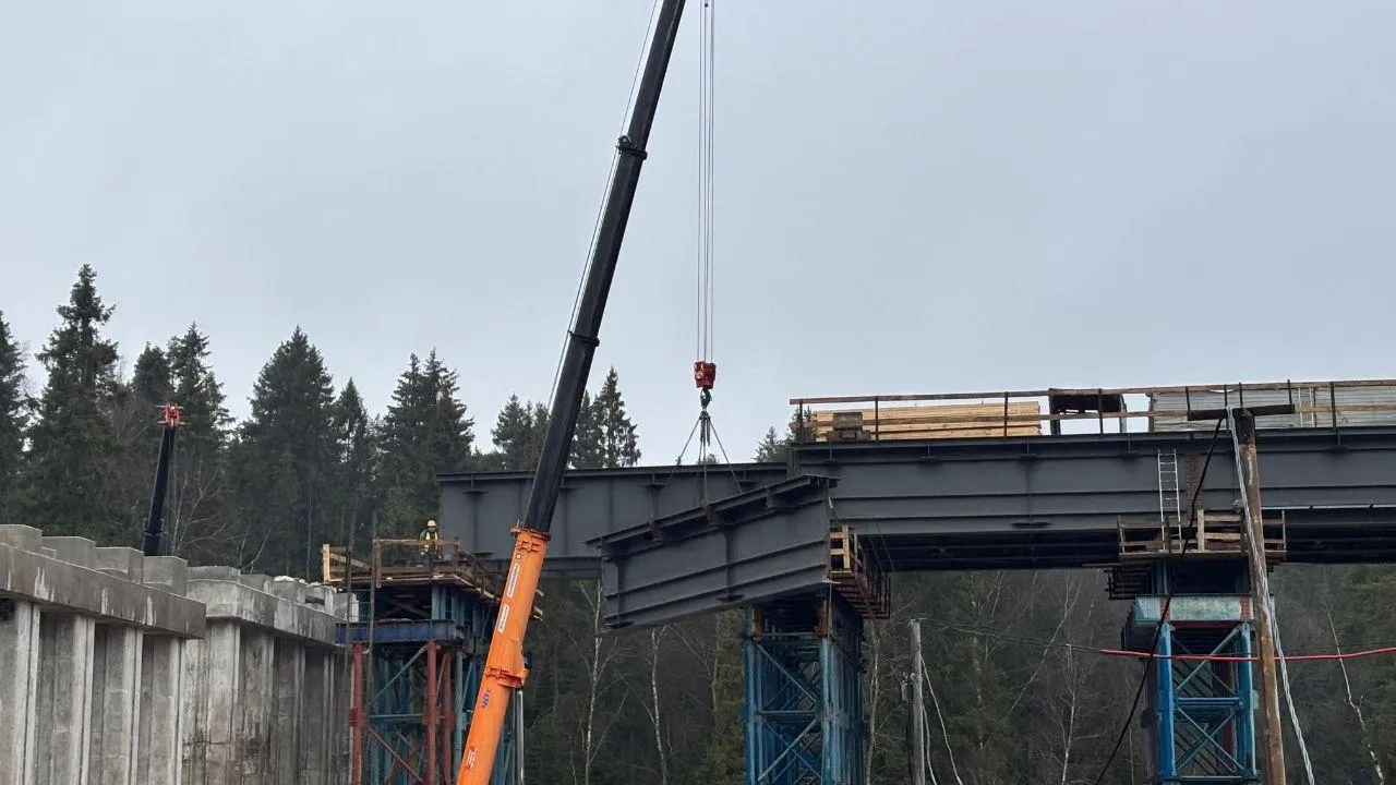 «Строительная готовность дублера составляет более 30%. Сейчас на путепроводе в районе деревни Сабурово завершили устройство опор и сборку металлоконструкций. Параллельно ведутся работы на мосту через реку Синичку: здесь продолжается возведение опор и укрупнительная сборка металлоконструкций», — рассказал глава министерства Марат Сибатулин.