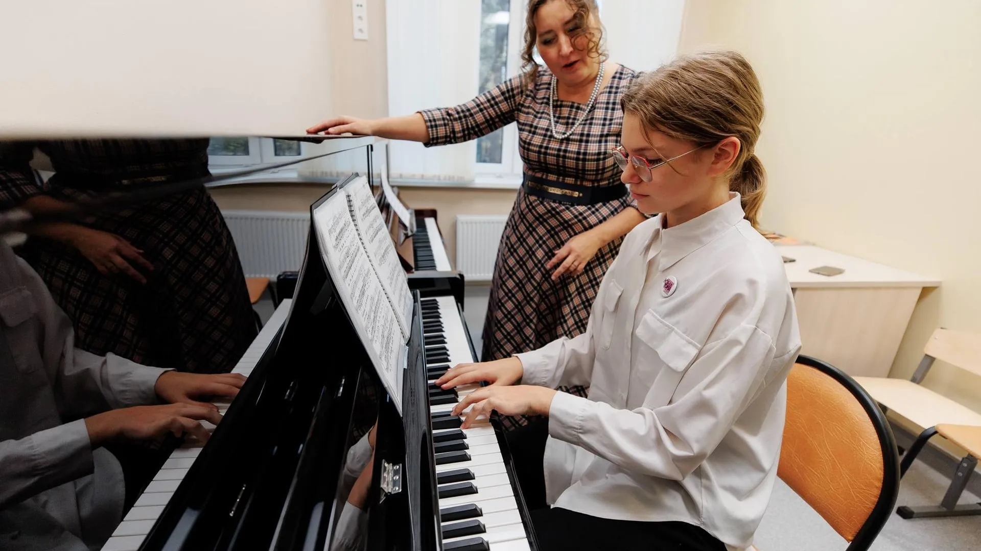 За девять месяцев в школе обновили все кабинеты, заменили коммуникации, окна и двери, установили звукоизоляционные панели. Новый облик получил концертный зал.