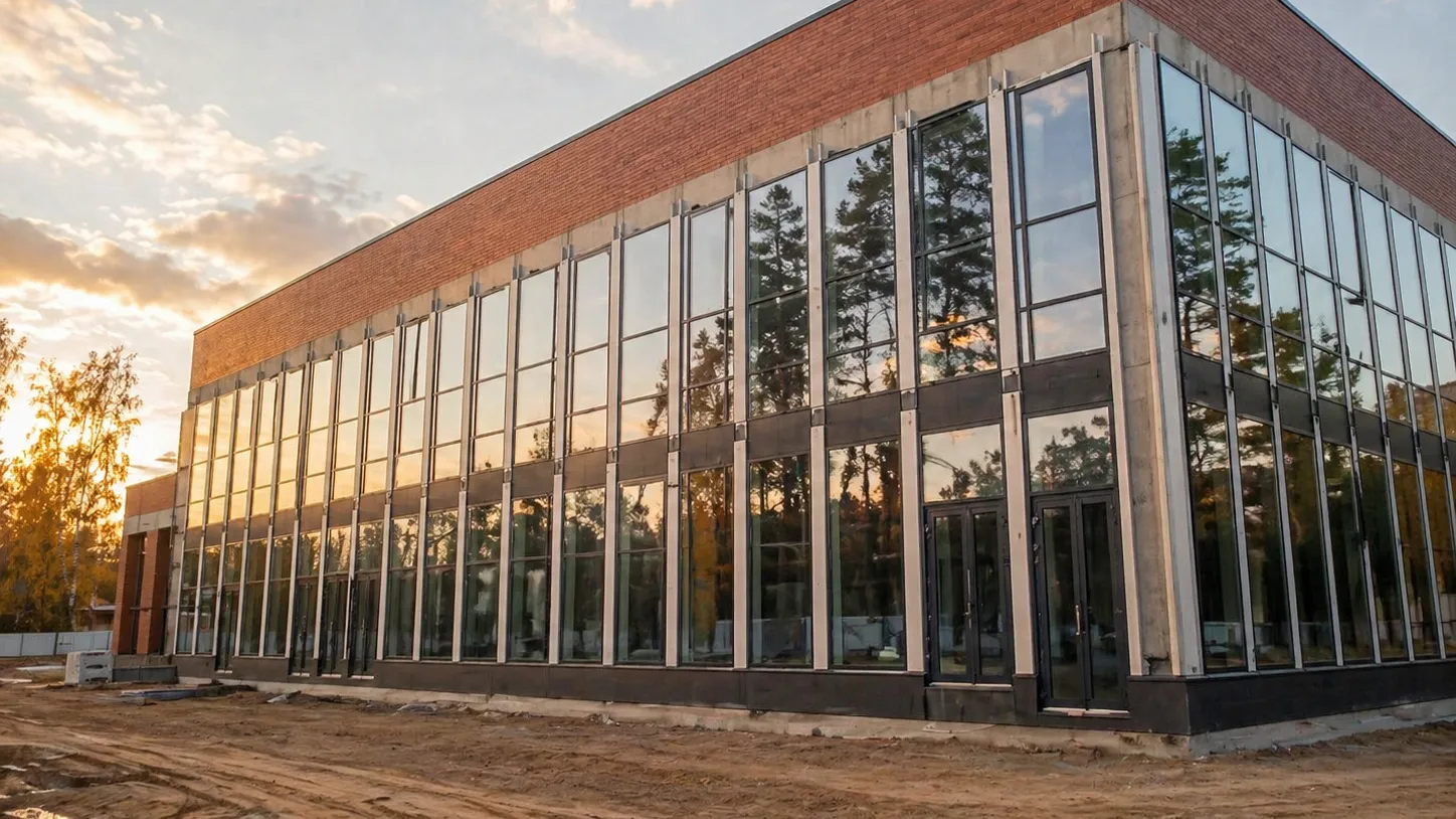 В поселке Монино в городском округе Щелково продолжается возведение нового физкультурно-оздоровительного комплекса с бассейном. Объект готов наполовину.