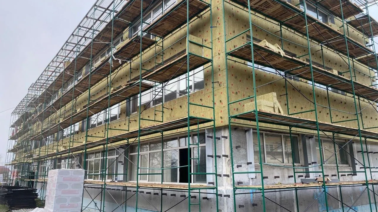 Утепление фасада — часть комплексного обновления здания. Параллельно строители меняют кровлю, прокладывают новые инженерные сети и возводят подпорную стенку. Все работы идут по графику, на объекте трудятся более 70 специалистов и пять единиц техники.