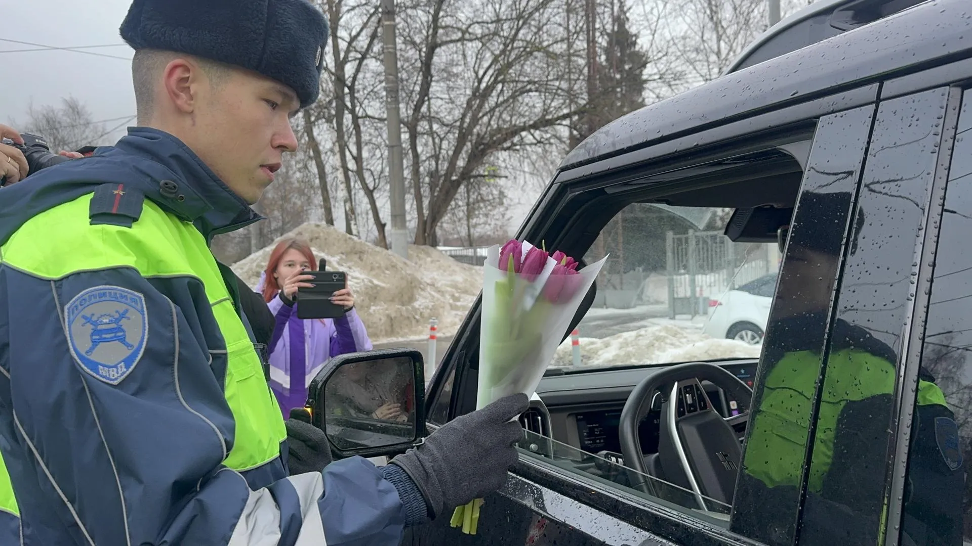В преддверии Международного женского дня сотрудники ГИБДД Ленинского городского округа устроили неожиданный сюрприз для автолюбительниц в городе Видное. Вместо обычной проверки документов инспекторы встречали женщин-водителей улыбками и букетами тюльпанов, желая им счастья и безопасных дорог.