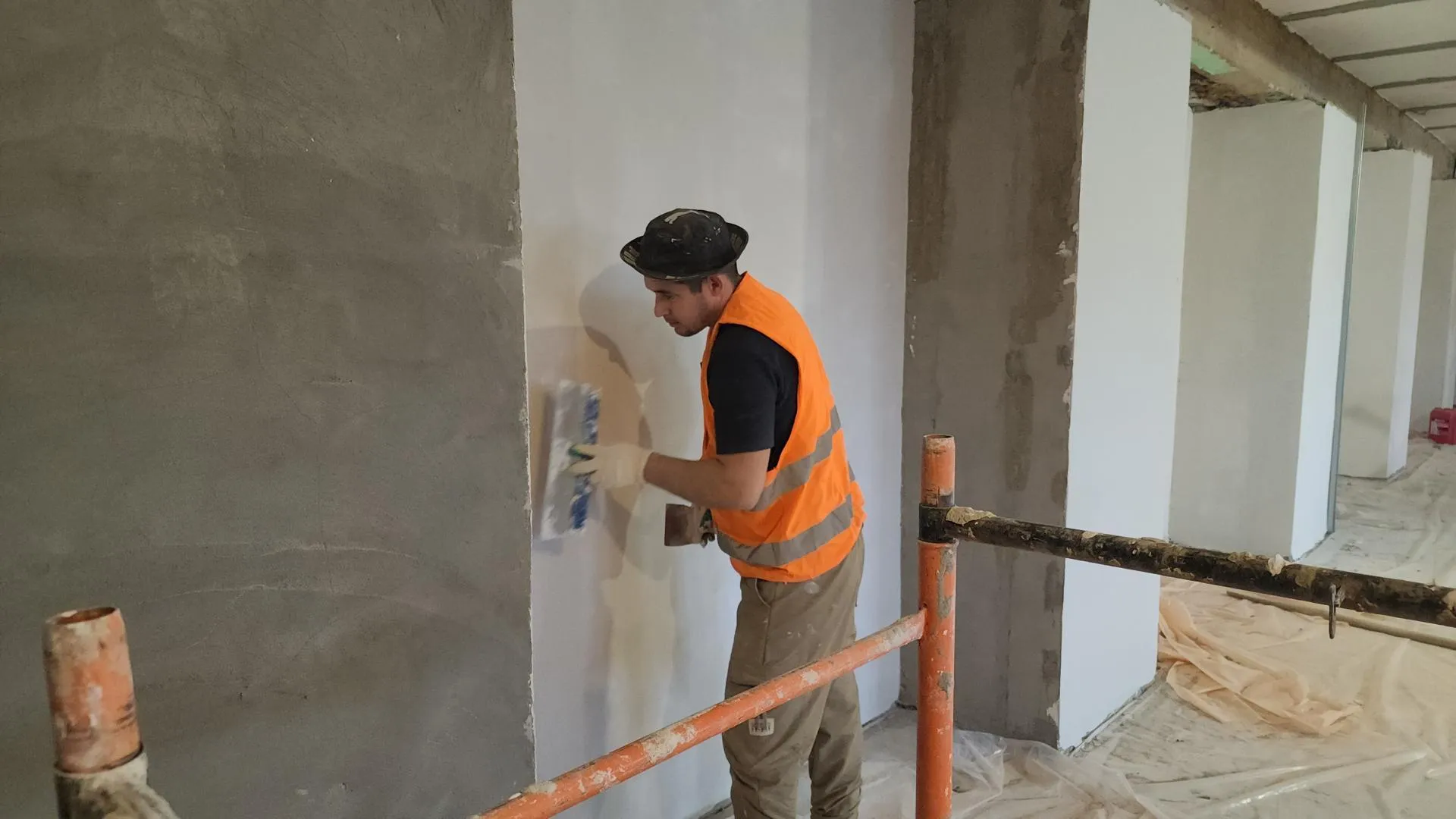 В Орехово-Зуевском городском округе, в городе Ликино-Дулево, идет капитальный ремонт здания Орехово-Зуевского техникума. На объекте работают 36 человек, которые занимаются отделкой помещений под покраску.