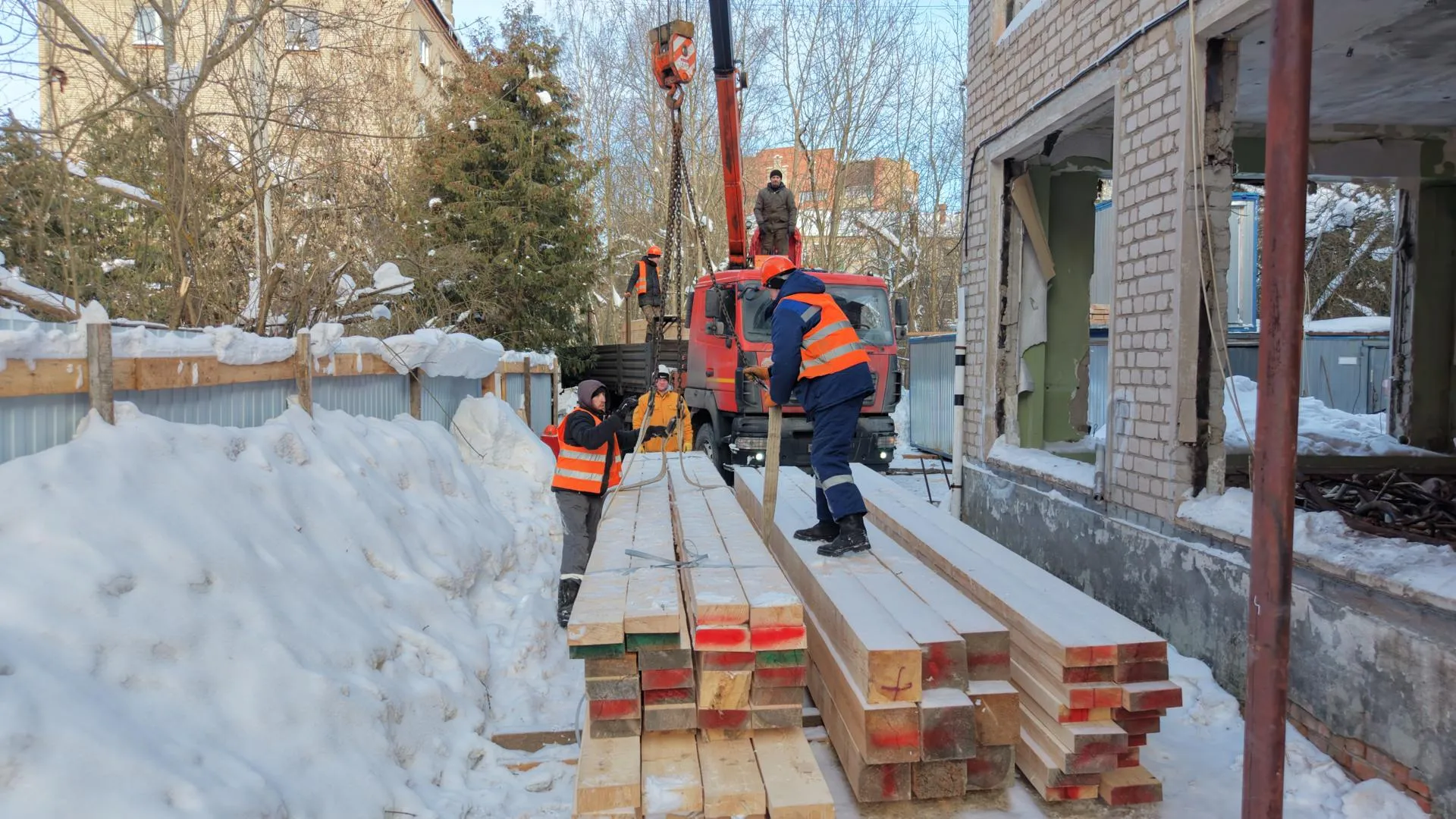 В детской хоровой школе мальчиков и юношей «Дубна» продолжаются масштабные работы по капитальному ремонту. На данный момент строительная готовность составляет 5,5 %. Рабочие активно демонтируют старые конструкции здания и приступают к ремонту кровли.
