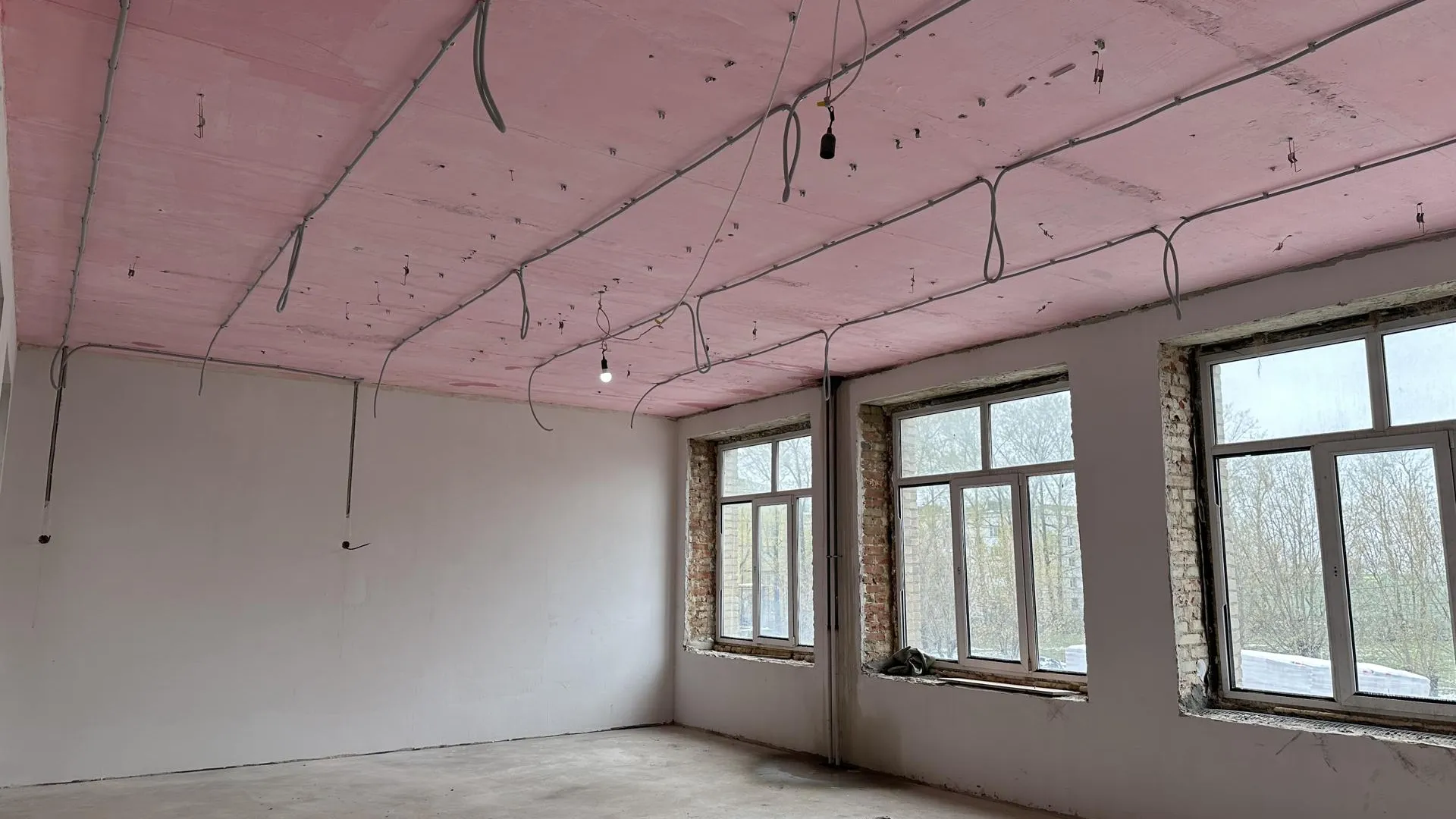 На втором и третьем этажах электромонтажные работы выполнены на 80%, в то время как на первом только начинаются. Параллельно на всех трех этажах полностью завершены работы по слаботочным системам.