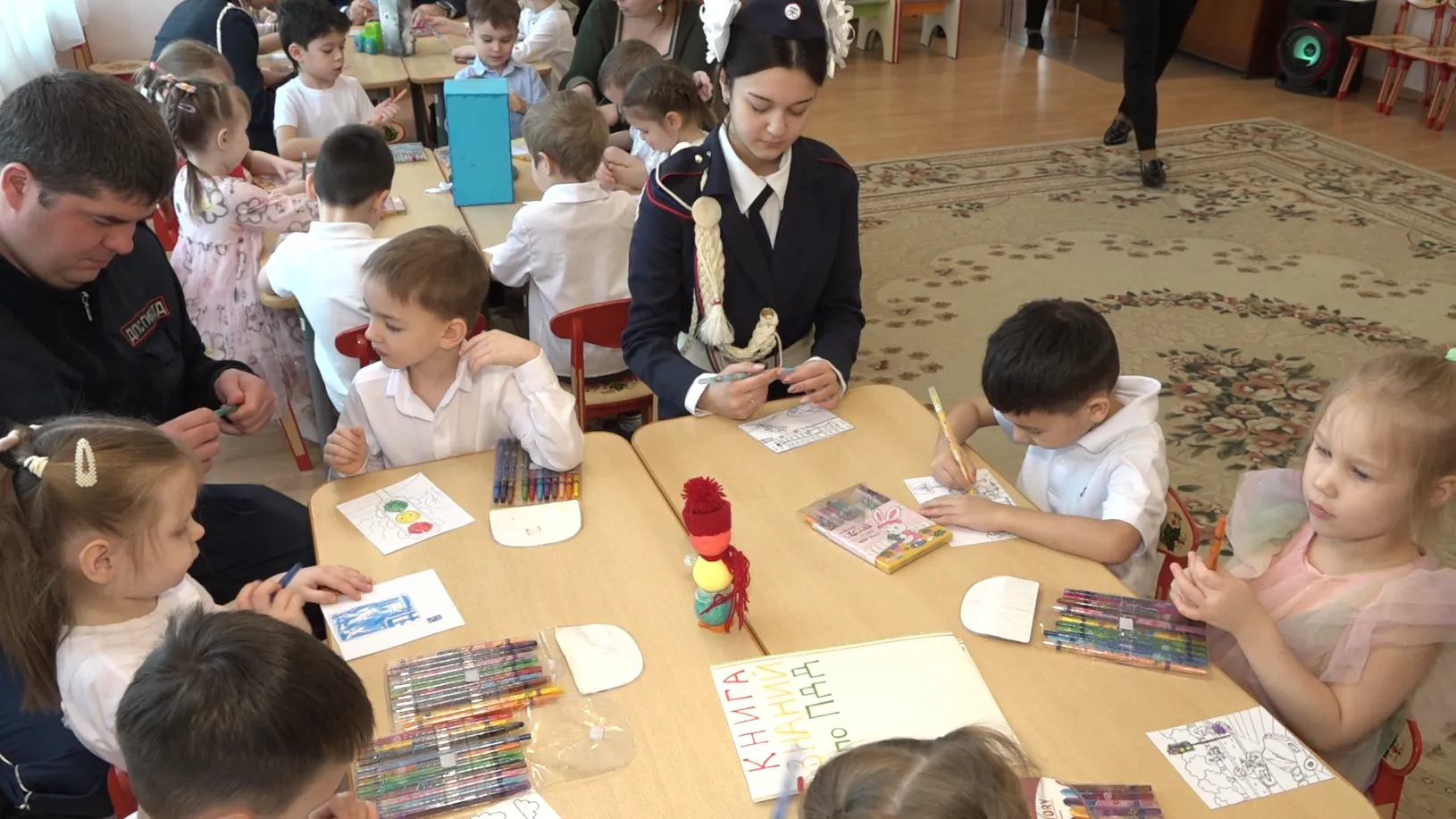 Сотрудники Госавтоинспекции провели занятие для воспитанников детских садов. Дошкольникам предложили творческое задание — оформить сборник правил безопасного поведения на дороге.