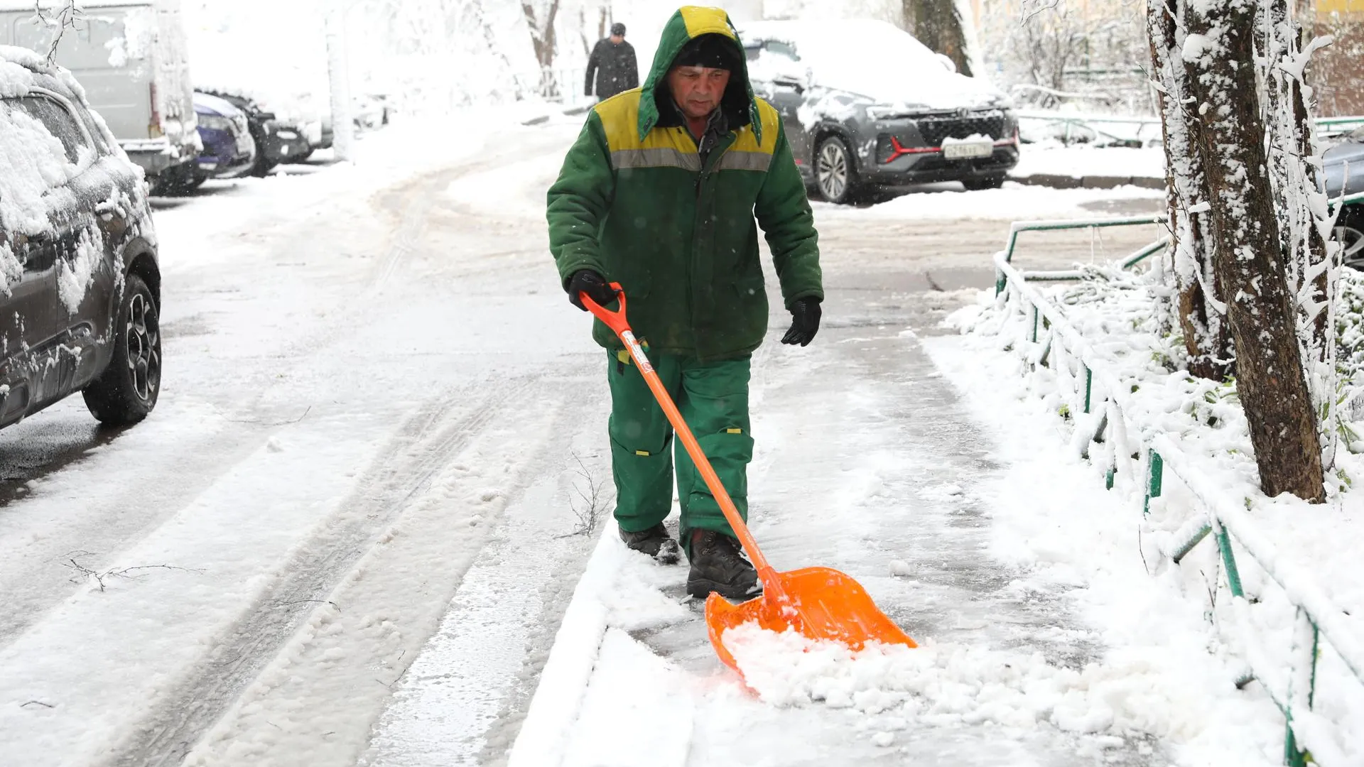 Коммунальные службы вышли устранять последствия снегопада в Долгопрудном