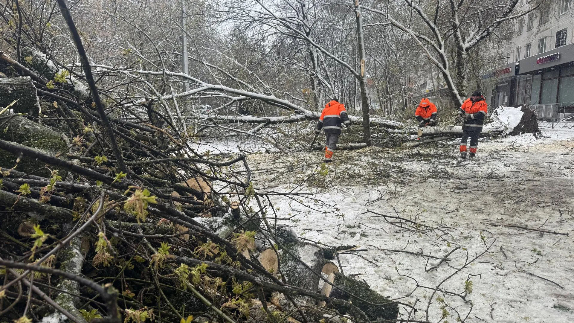 Мастер участка Вадим Козлов сообщил, что около девяти утра им поступил сигнал о происшествии. Бригада оставила текущие задания и выехала на место с необходимым оборудованием, включая бензопилы. Первым делом рабочие освободили от деревьев проезжую часть и пешеходные зоны, после чего приступили к уборке остальной территории.