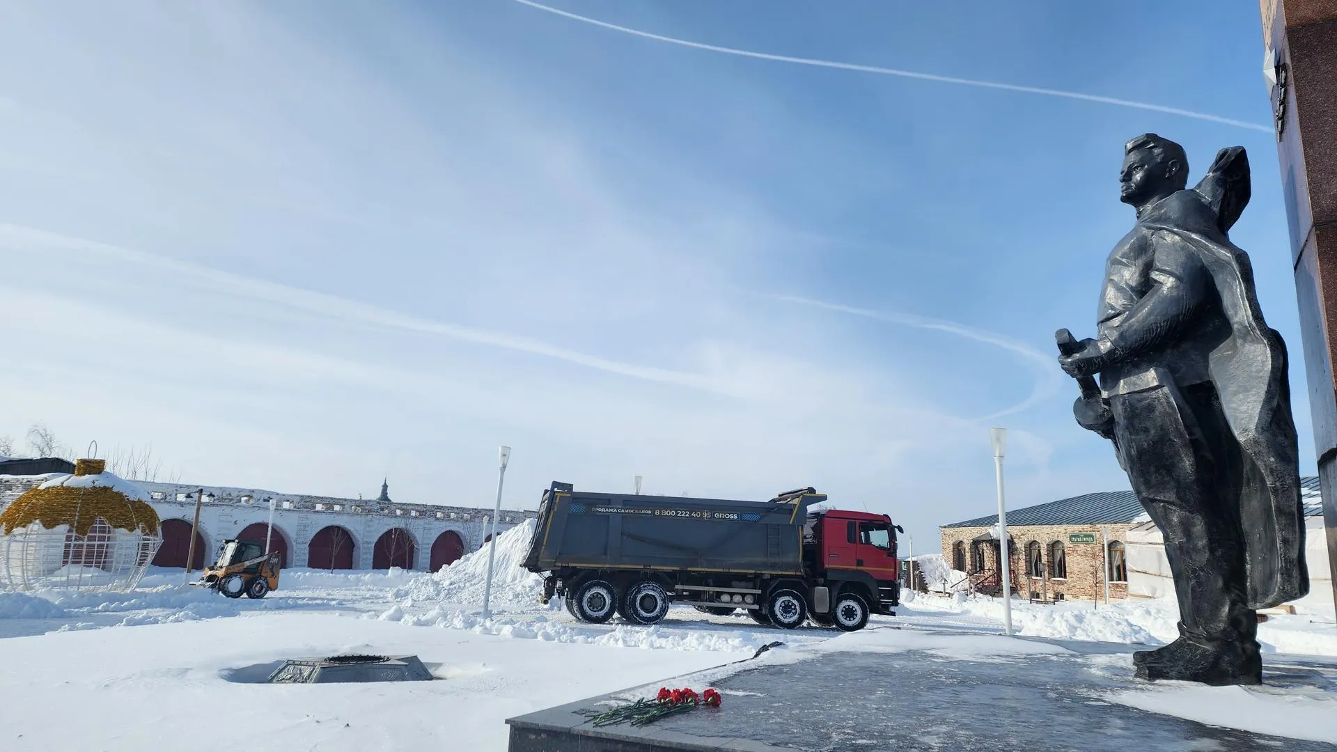Сотрудники коммунальных служб Зарайска активно работали над очисткой площади Революции после сильного снегопада. В уборке были задействованы шесть человек и пять единиц техники.