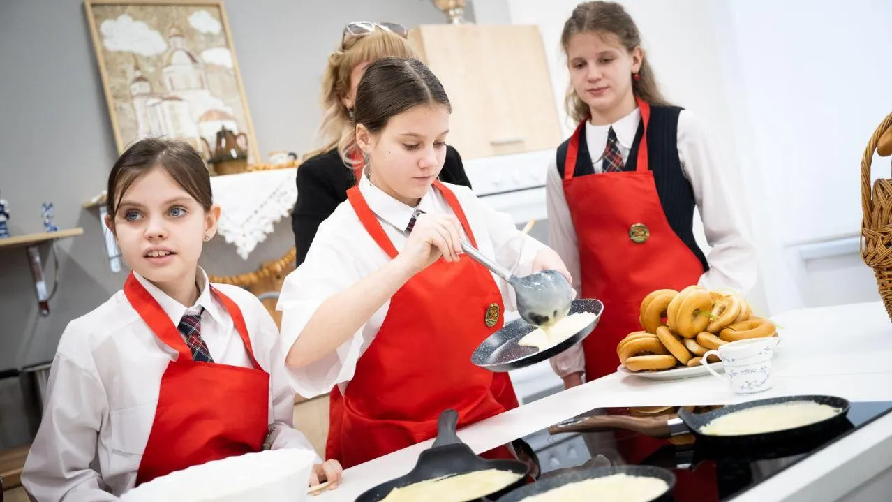 В школе № 51 поселка Мирный для детей участников СВО провели масленичный мастер-класс по выпечке блинов. Мероприятие состоялось 16 февраля, в нем принял участие глава городского округа Люберцы Владимир Волков.