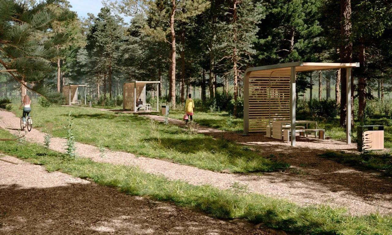 В лесопарке сделают входную группу и парковку рядом с ней. В центральной части расположится зона с павильоном проката и кафе. Появится огороженная площадка для выгула собак, беседки и модульные туалеты.