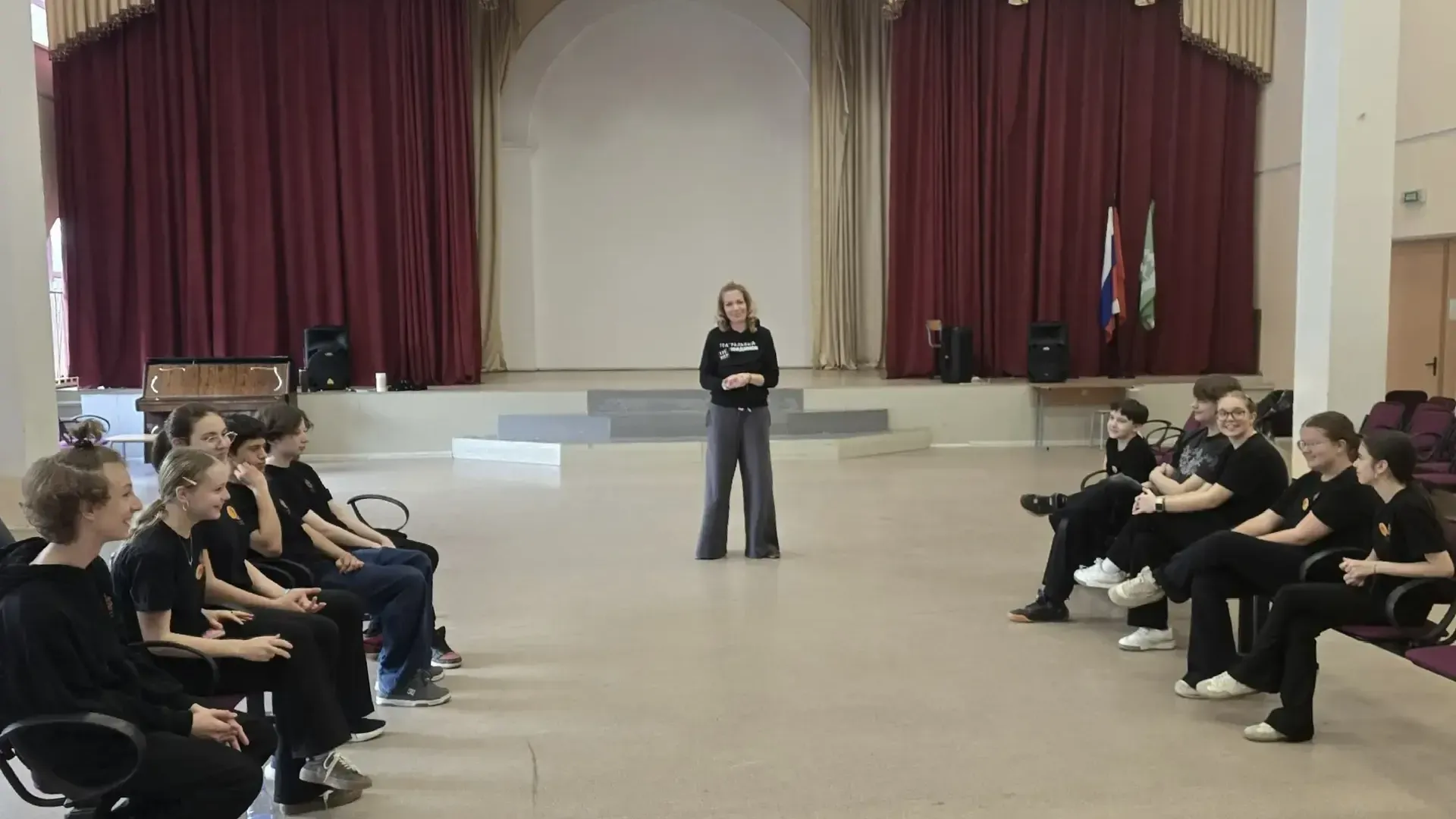 В школе № 30 в Химках 28 марта прошел мастер-класс для участников театральной студии «Волшебный мир театра». Занятие провела тренер молодежного проекта «Театральный поединок» Екатерина Тонгур.