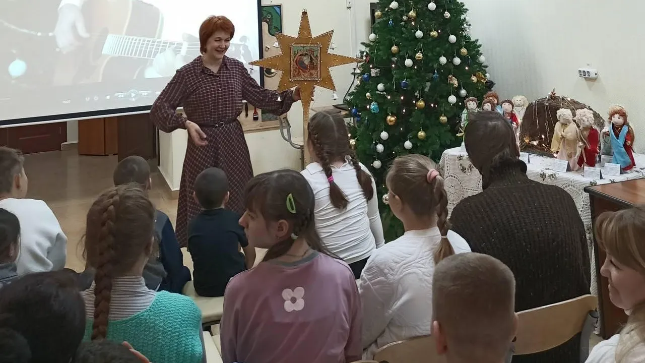 Ребятам показали мультфильм о Рождестве. Учащиеся православной гимназии имени Богородского исполнили колядки, а сотрудник Ногинского музея Ольга Тихомирова рассказала ребятам об ангелах и архангелах.
