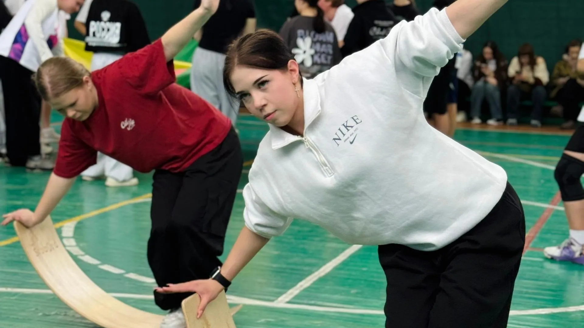 Самым захватывающим этапом стало знакомство с тренажером «Сибирский борд» — нестабильной платформой для развития вестибулярного аппарата и координации у дошкольников. Студенты попробовали удержать равновесие на тренажере, прочувствовав сложность упражнений, которые предстоит осваивать их будущим воспитанникам.