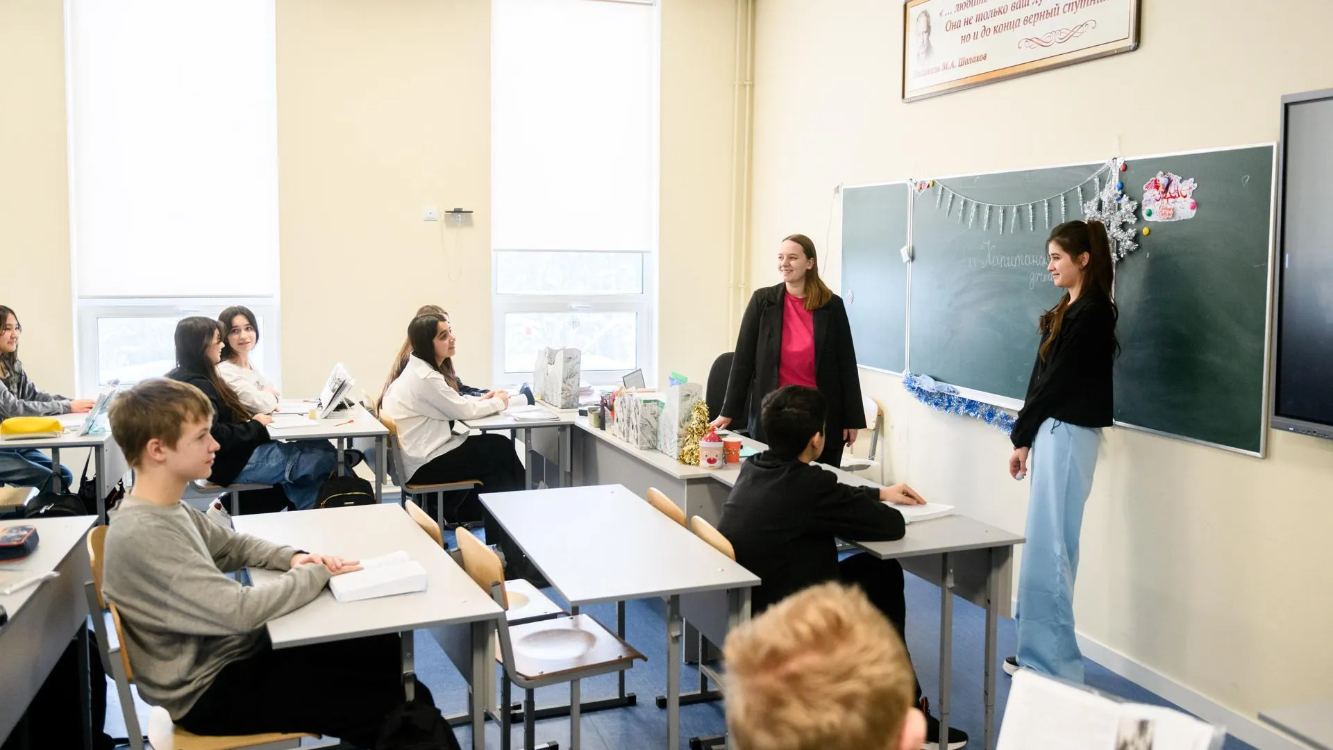 По словам молодого специалиста, ей очень нравится работать в новой школе. Александра отмечает, что опытные преподаватели-предметники поддерживают ее и помогают накопленным опытом. Они предоставляют методические разработки и личные рекомендации, что облегчает адаптацию начинающего педагога.