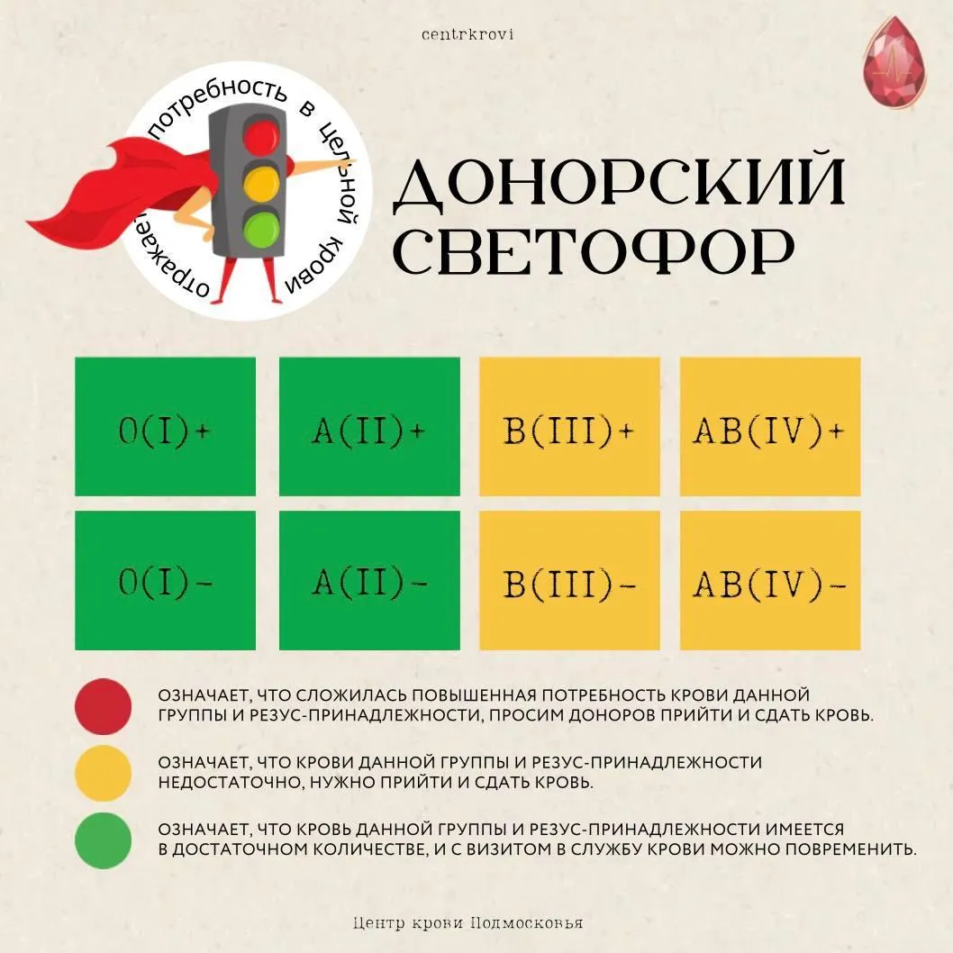 Московский областной центр крови опубликовал донорский светофор на 10 марта