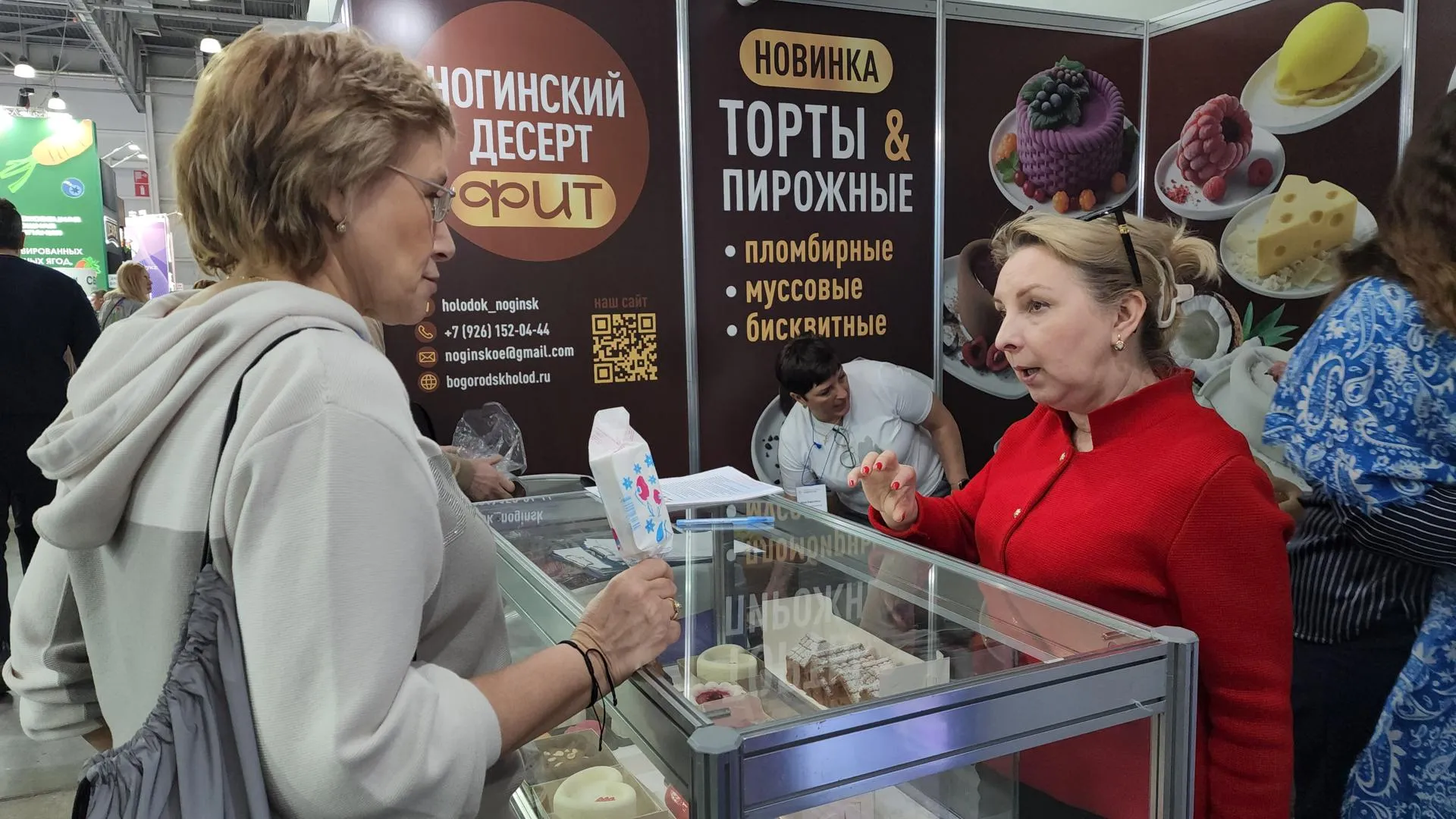Одним из участников стал Богородский хладокомбинат. Руководитель департамента сбыта Наталья Васильева рассказала, что в этом году компания представила новое направление — кондитерские изделия из мороженого. Это муссовые торты и пирожные, которые выпускают в замороженном виде.