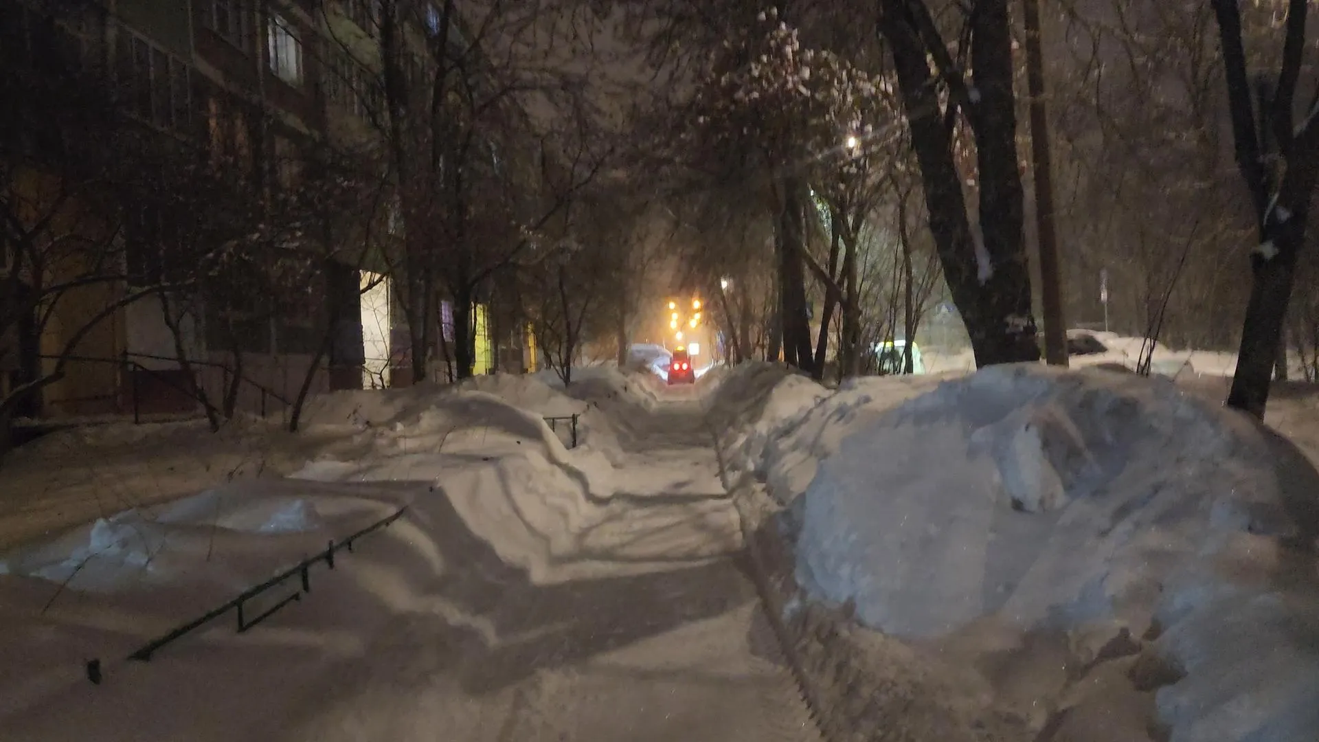 «Сложность — сталкиваться с движением, в ночные часы много машин. <…> Вывозим прибордюрную часть, полностью валы снежные — полностью все убираем», — рассказал Красиков.