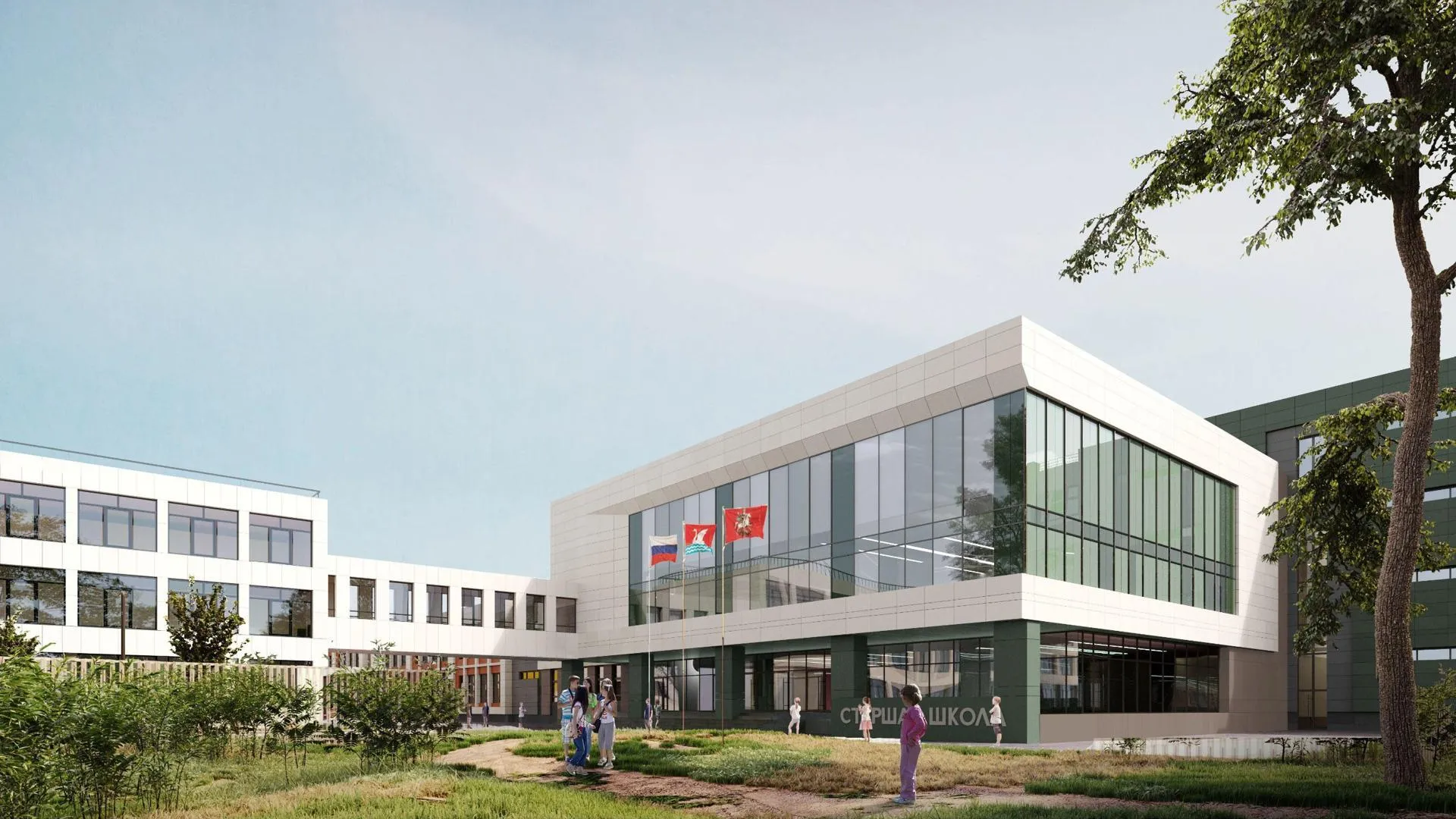 Новый корпус площадью более 20 тысяч квадратных метров соединят с действующим зданием школы теплым переходом.
