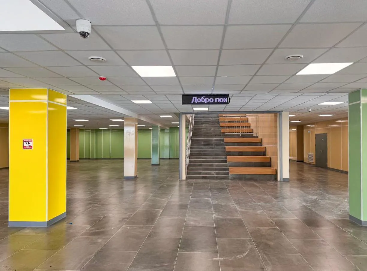 В четырехэтажном здании обустроили детский сад на 150 мест, а также блоки начальной, основной и средней школ на 900 учеников. Внутри построили музыкальные, актовые и спортивные залы, игровые, библиотеку, столовую и другие помещения.
