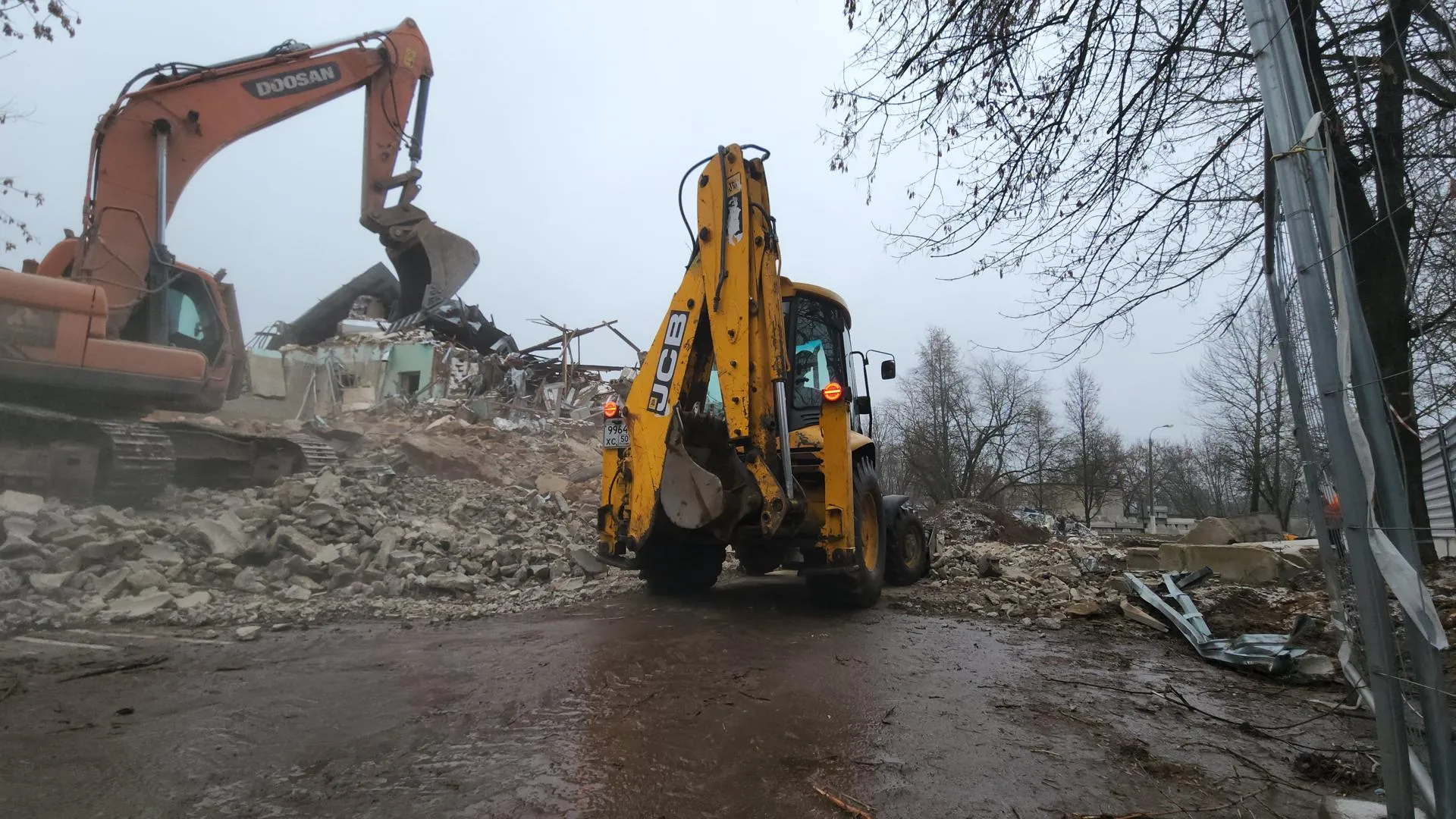 Специалисты продолжают демонтировать старые конструкции со стройплощадки будущего медицинского центра в Мытищах. Они уже снесли терапевтический и инфекционный корпуса, а также станцию переливания крови.
