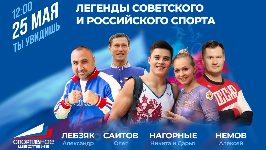 «В мероприятии примут участие 30 спортивных федераций и обществ, а также чемпионы и легенды российского спорта, такие как: четырехкратный олимпийский чемпион по спортивной гимнастике Алексей Немов, олимпийский чемпион по спортивный гимнастике Никита Нагорный, серебряный призер Олимпийский игр Дарья Нагорная, двукратный олимпийский чемпион по боксу Олег Саитов и олимпийский чемпион по боксу Александр Лебзяк», — рассказали в министерстве.