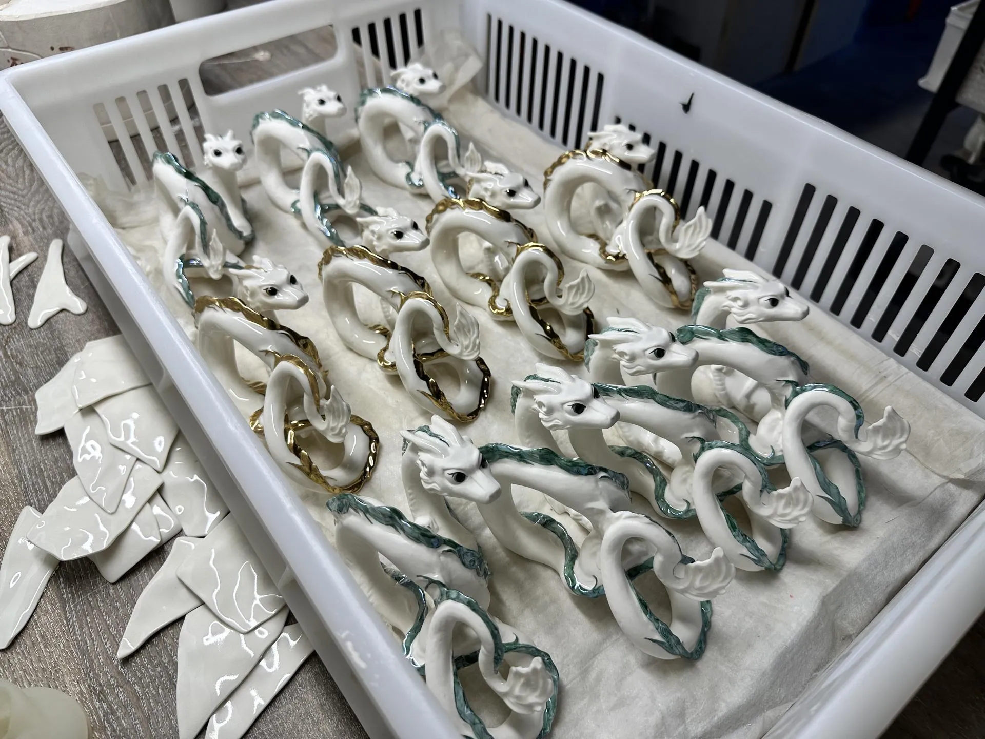 «Мы не просто творим посуду, бижутерию, елочные игрушки, мы еще и делимся своим опытом с гостями арт-центра „Фабрик“. Каждую неделю здесь в мастерской экскурсии проходят, сами видите: не протолкнуться, взрослые и дети завороженно слушают нашу историю и видят часть процесса», — рассказывает мастер.
