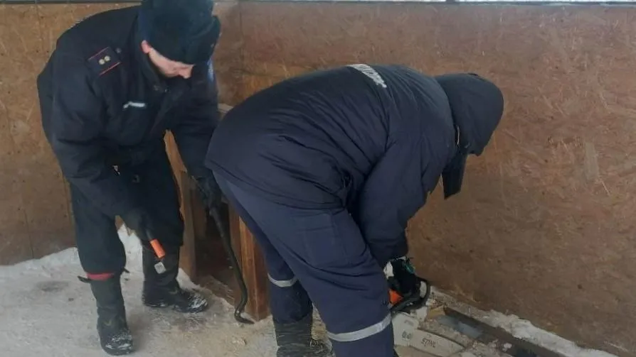 Спасатели оперативно прибыли на место. Они увидели торчащий из расщелины нос и услышали жалобный вой. С помощью специального оборудования спасатели сняли забор, приподняли деревянную будку и демонтировали ее. Затем с помощью шанцевого инструмента специалисты разобрали полы вольера и обнаружили там застрявшего пса.