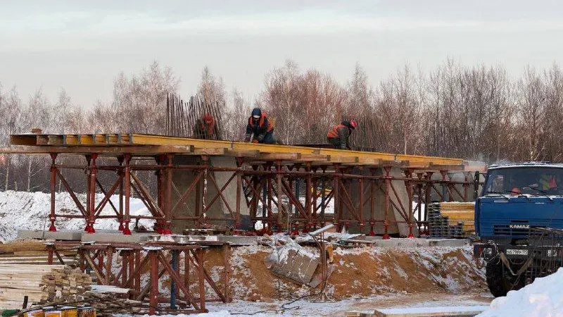 Возле железнодорожной станции Черное в Балашихе строители начали новый важный этап работы. Они приступили к созданию ключевой части будущего путепровода — ригеля.