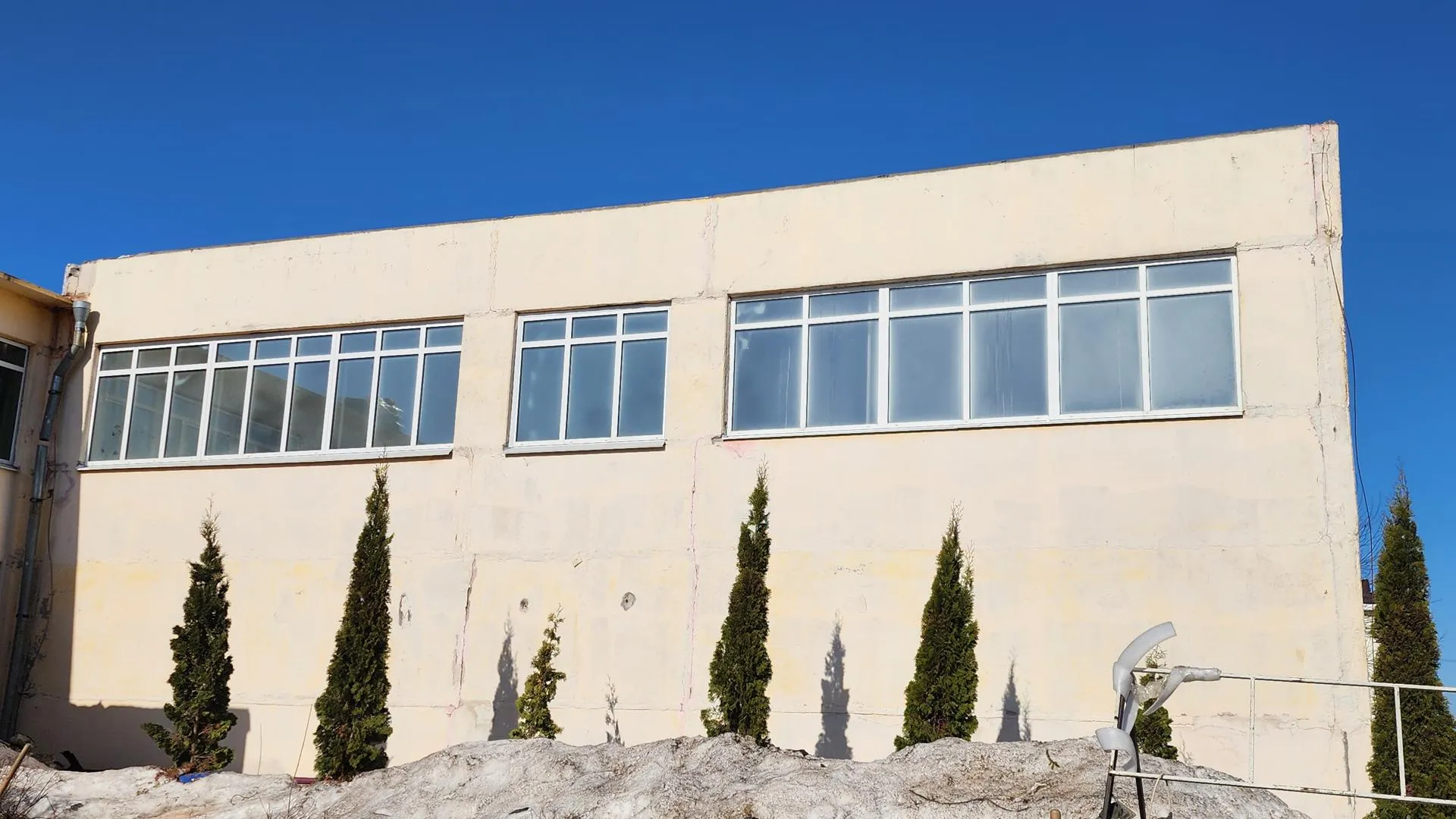 Параллельно ведется подготовка кровли: выполнен демонтаж, в спортзале уложена пароизоляция, идет утепление. Подрядчик обещает полностью закрыть тепловой контур здания к концу апреля. Это позволит приступить к внутренней отделке стен и потолков, а также к прокладке инженерных сетей.
