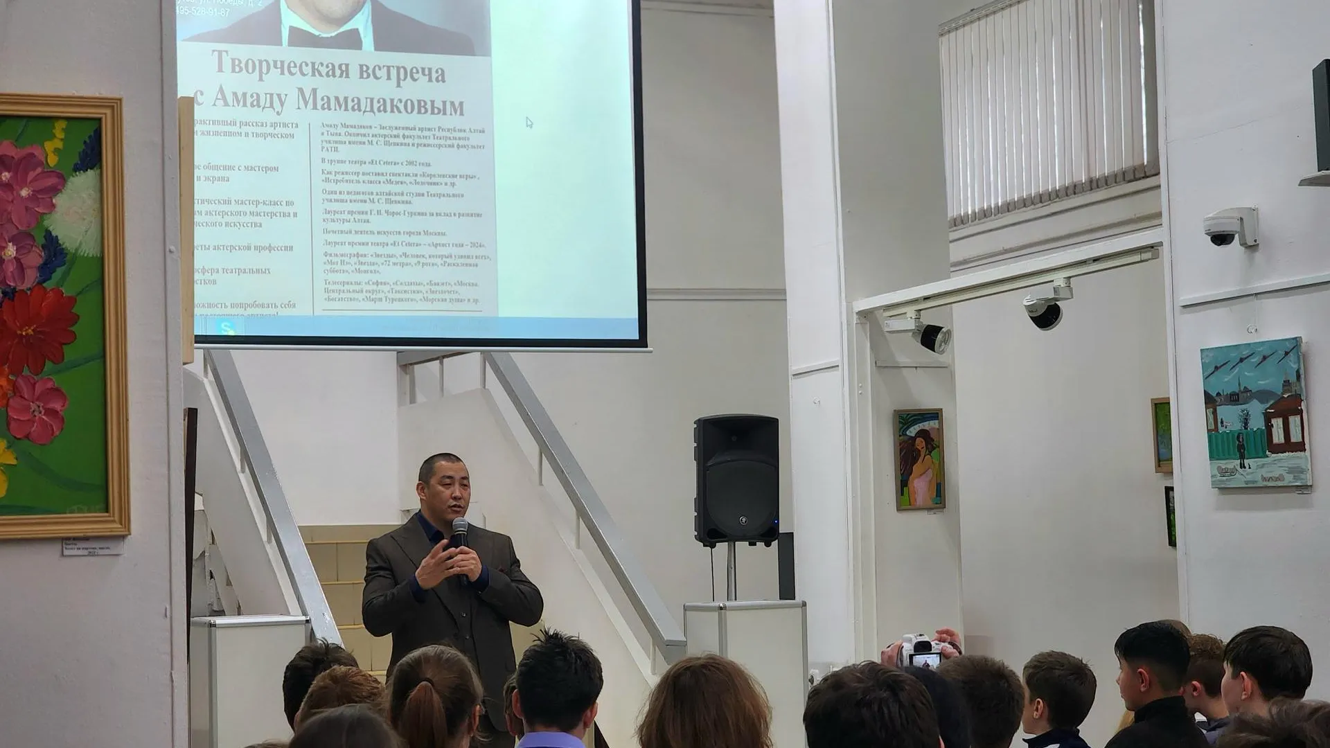 Амаду Мамадаков, знакомый зрителям по культовым фильмам и сериалам, рассказал школьникам о своем жизненном и творческом пути. Он подчеркнул важность личного опыта и признался, что в детстве у него не было возможности посещать подобные встречи. По словам артиста, его мотивирует возможность дать детям то, чего когда-то не хватало ему самому — живое общение с мастером «из первых рук».