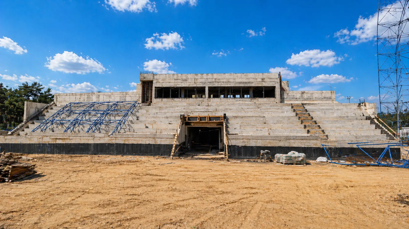 На стадион уложат искусственное футбольное поле, сделают беговые дорожки, места для прыжков, площадки для баскетбола и волейбола. Зимой территорию смогут использовать как ледовую арену, рассказали в региональном стройнадзоре.
