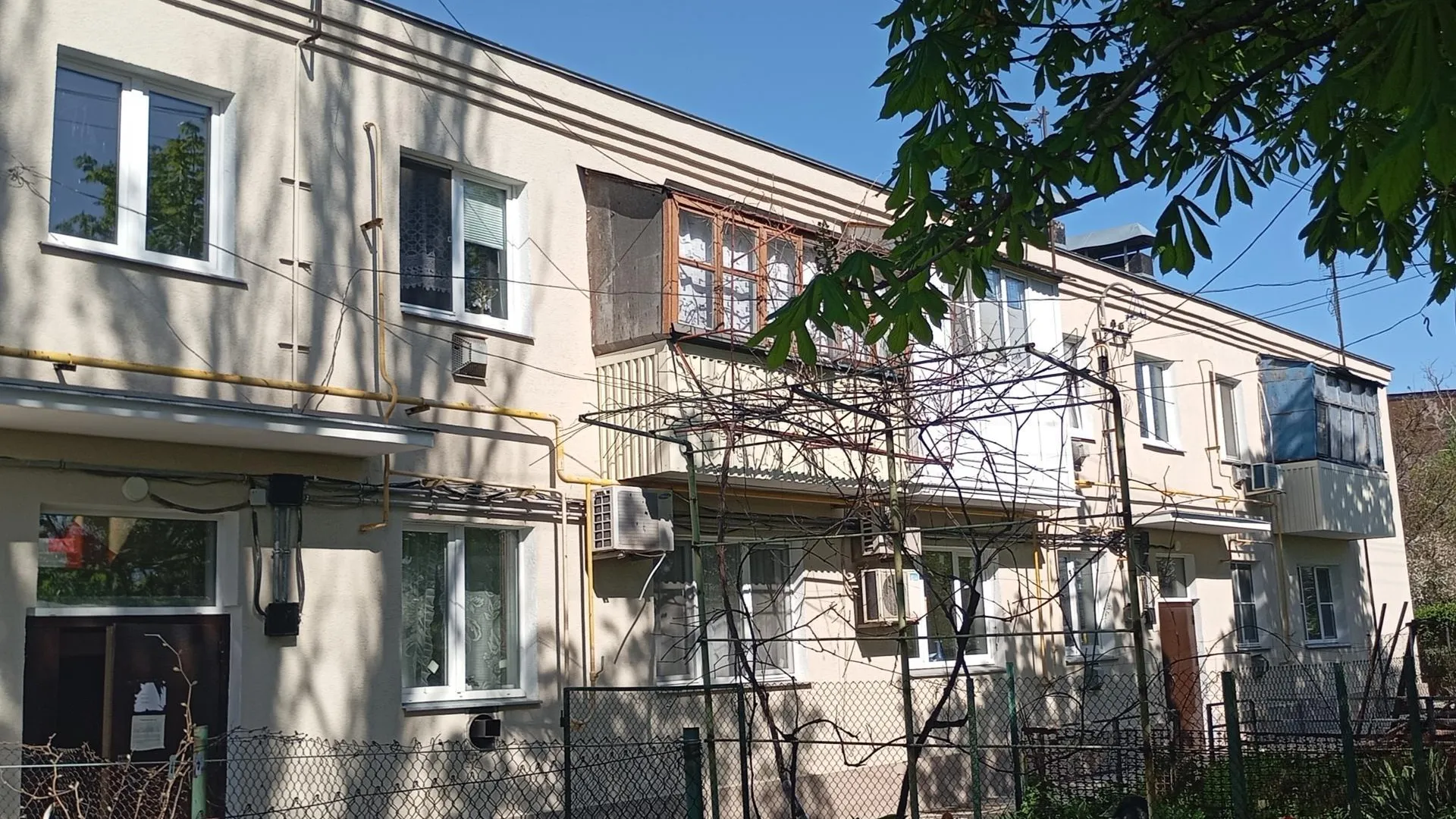 Двухэтажный дом, поврежденный в ходе боевых действий, полностью восстановили. Подрядная организация выполнила ремонт несущих конструкций и фасада, заменила кровлю и окна, обновила внутреннюю отделку мест общего пользования, а также инженерные системы, включая канализацию и газоснабжение.