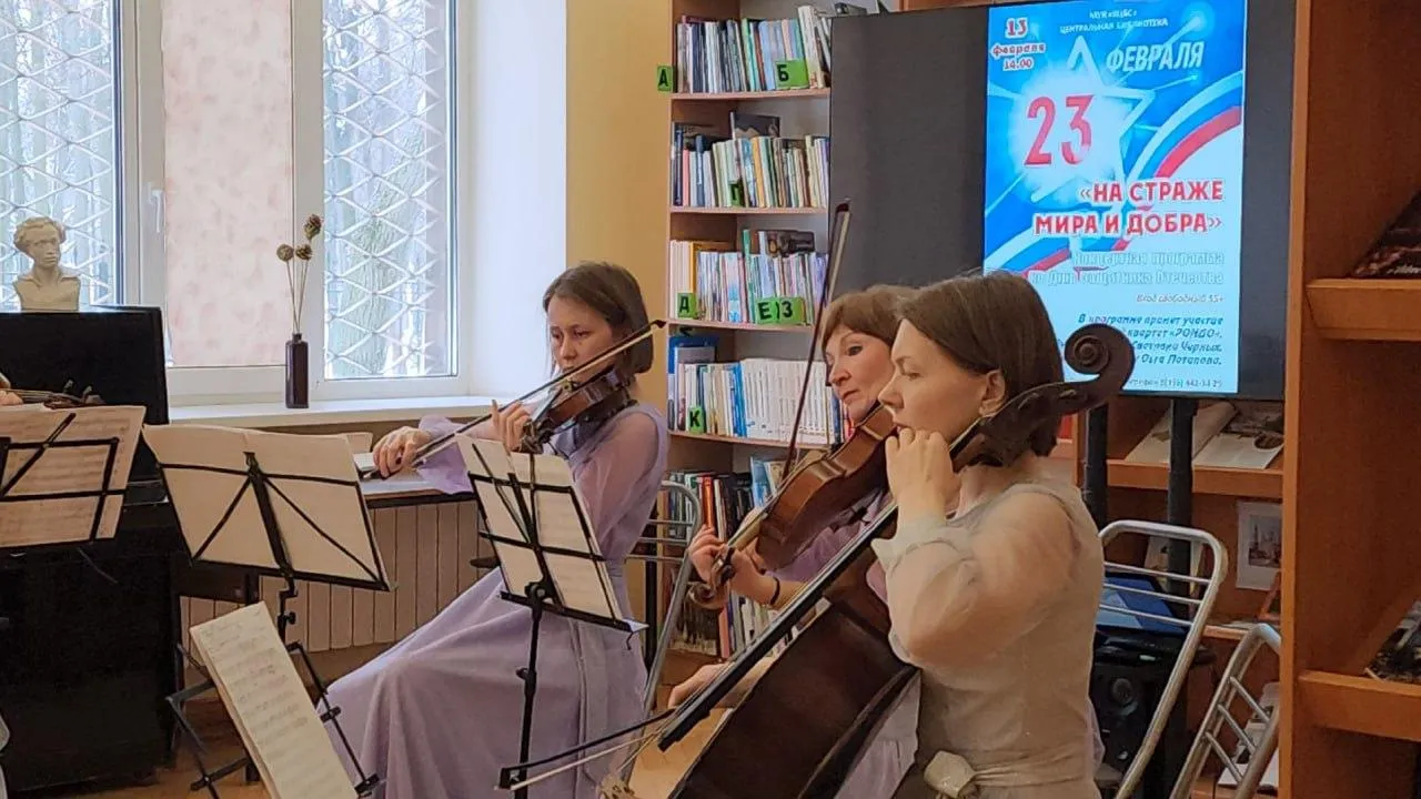 Концерт струнного квартета «Рондо» прошел в Центральной библиотеке Воскресенска преддверии Дня защитника Отечества. Подобные мероприятия проводятся для гостей библиотеки каждую неделю.