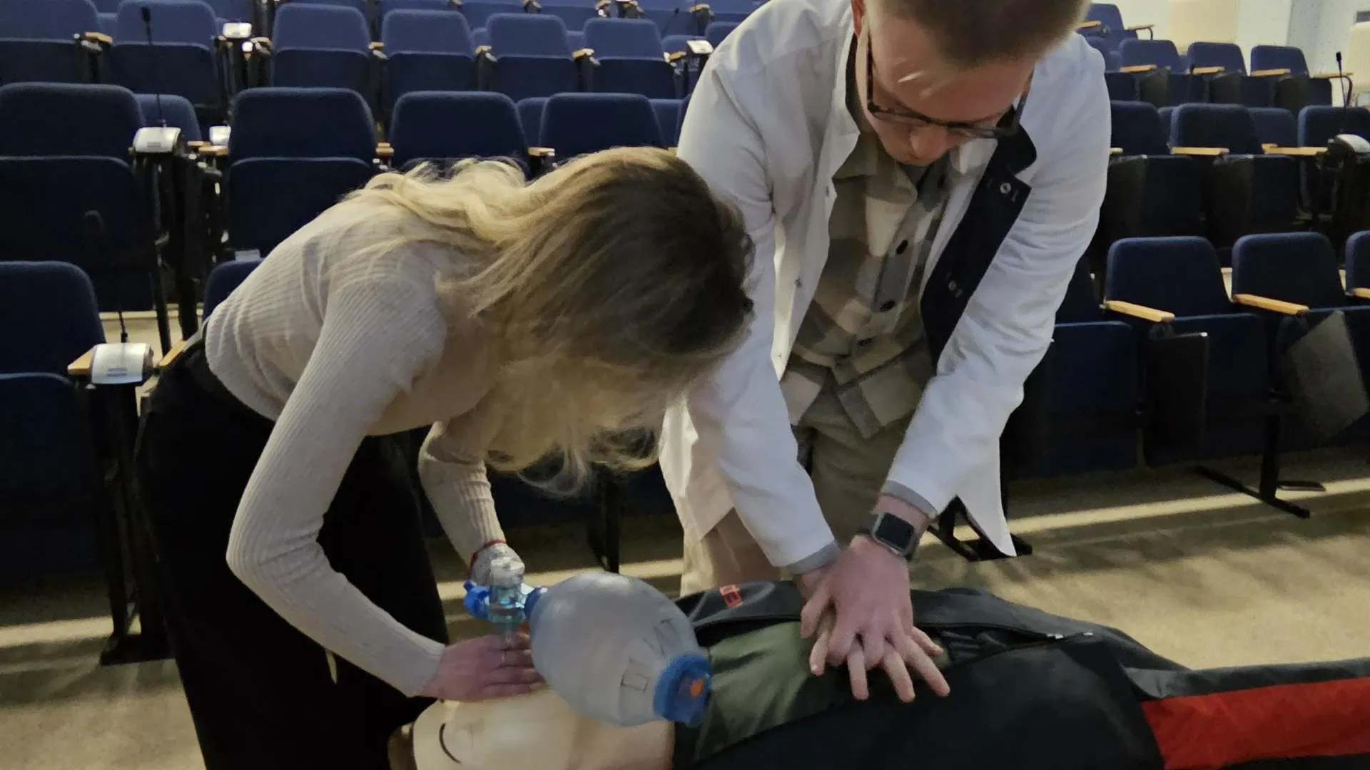 Урок сердечно-легочной реанимации прошел в Московском областном онкологическом диспансере. Оказывать первую помощь научили студентов Государственного Университета Просвещения.