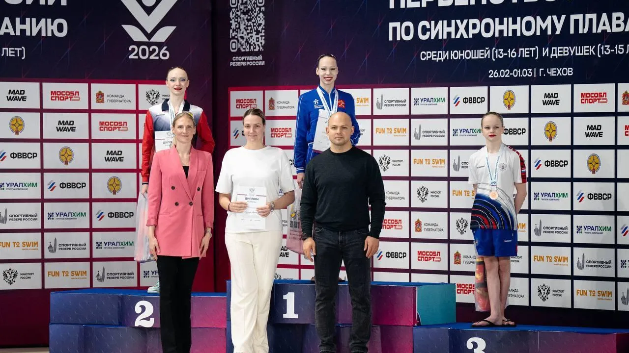 Сборная Московской области успешно выступила на первенстве России по синхронному плаванию среди девушек 13-15 лет, которое прошло в Чехове с 25 февраля по 2 марта 2026 года. Команда завоевала две серебряные и две бронзовые медали, сообщает пресс-служба министерства физической культуры и спорта Московской области.