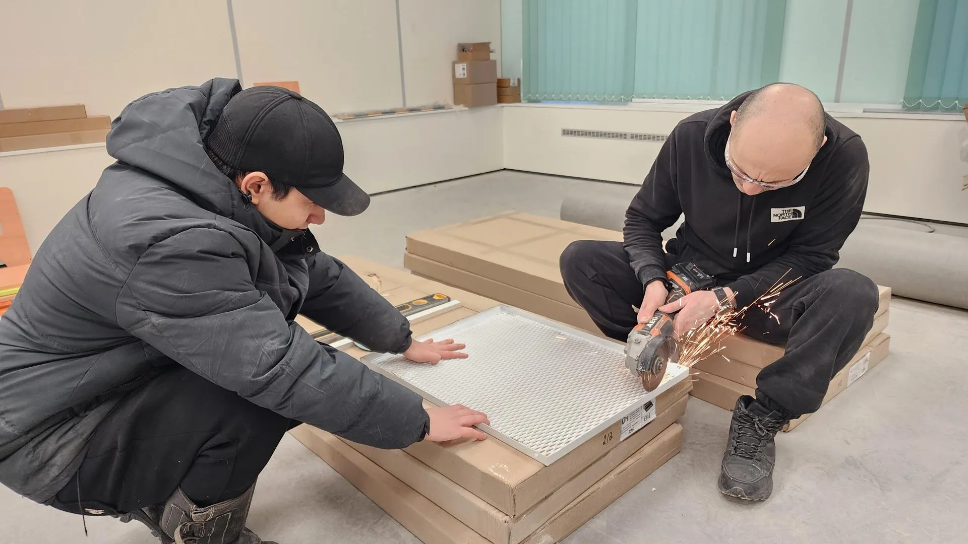 Полностью заменены пластиковые окна, стены в раздевалках, игровых комнатах и спальнях облицованы специальными панелями. Закончены стяжка наливных полов, укладка линолеума, установка навесных потолков, розеток, подоконников и решеток на радиаторы отопления.