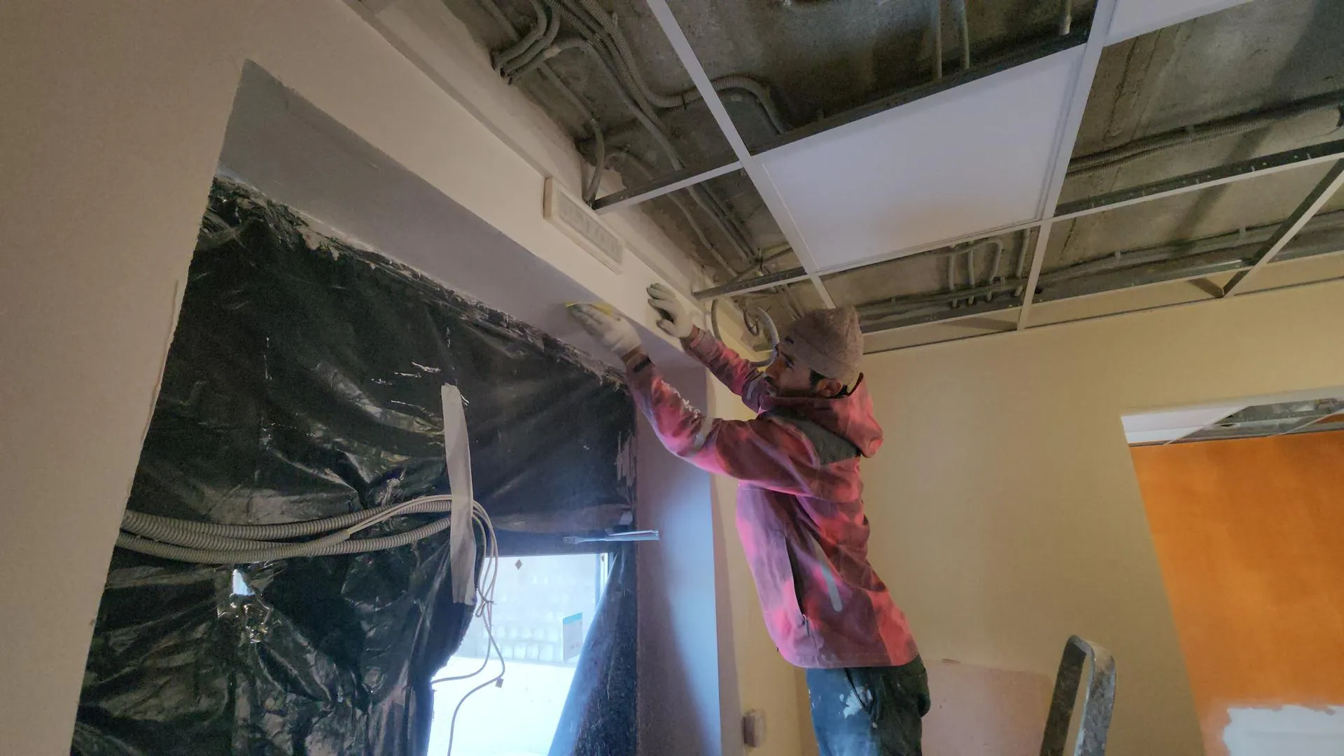 По словам начальника участка ООО «СтройИнвест» Андрея Устеменко, параллельно с монтажом подвесных потолков рабочие устанавливают электросветильники и двери на первом и втором этажах. Следующим этапом станет окрашивание поверхностей вторым слоем и укладка линолеума во всех комнатах.