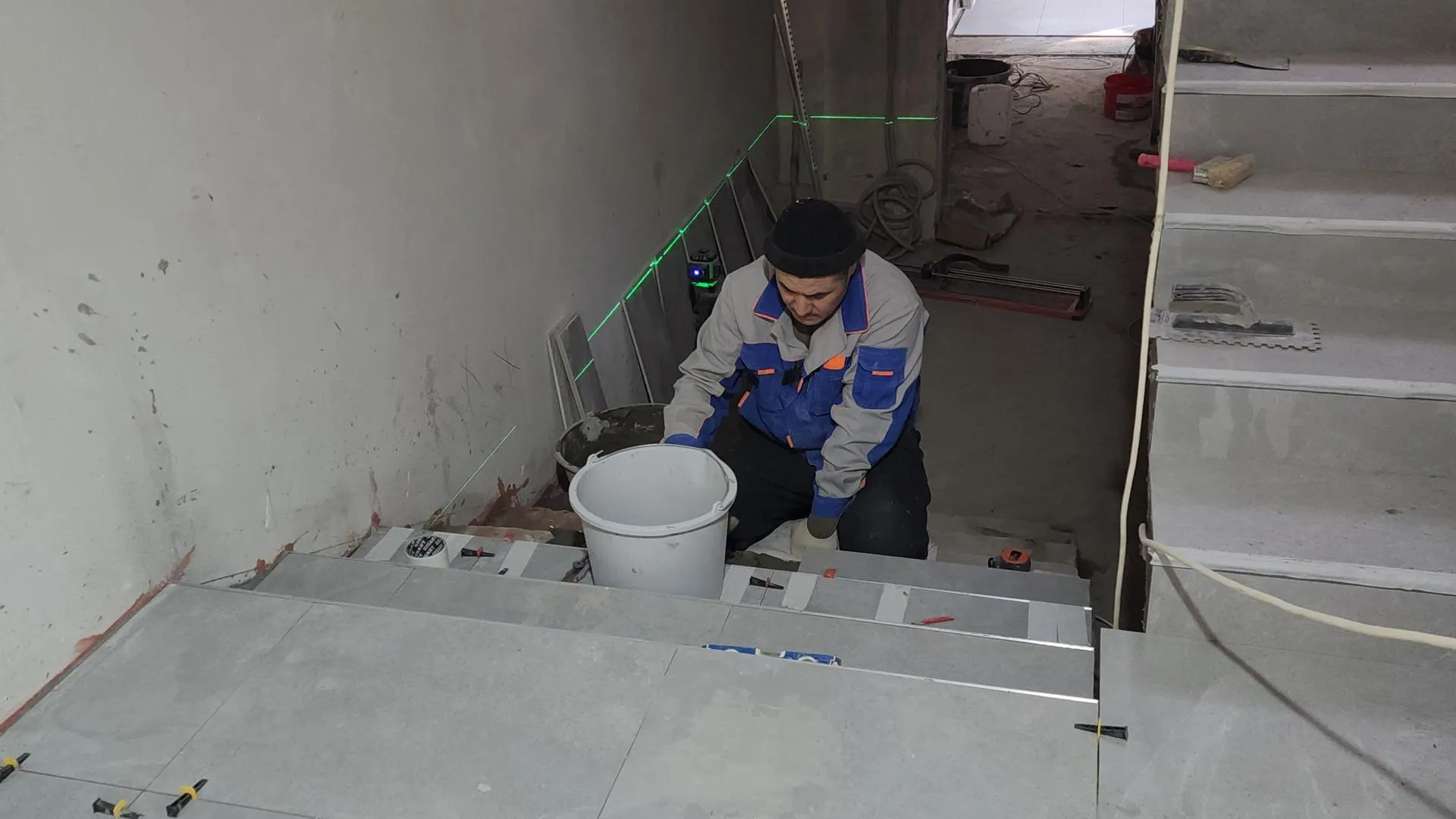 Помещения отделывают кафельной плиткой, в одном из них уже установили алюминиевые двери. Рабочие продолжают устанавливать внутренние двери, заканчивают монтаж вентиляции и слаботочных систем, а также укладывают плитку на полах.