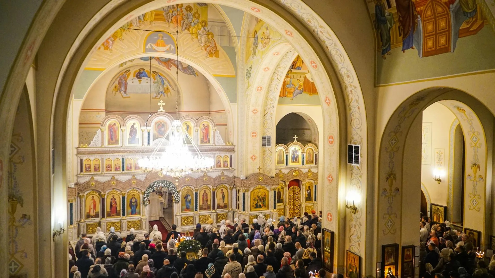 Одна из самых массовых служб состоялась в храме Богоявления Господня, где собрались сотни верующих.