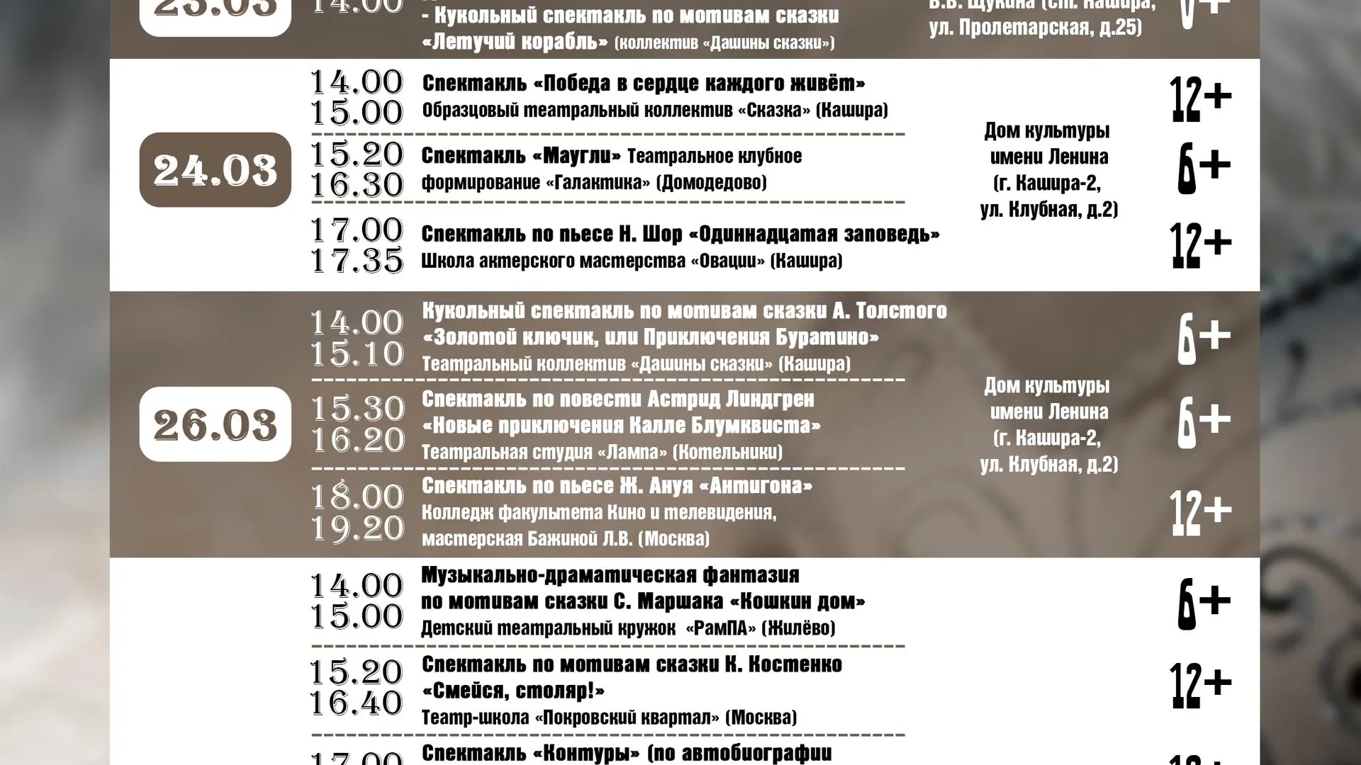 В Кашире пройдет театральный фестиваль имени Б. В. Щукина