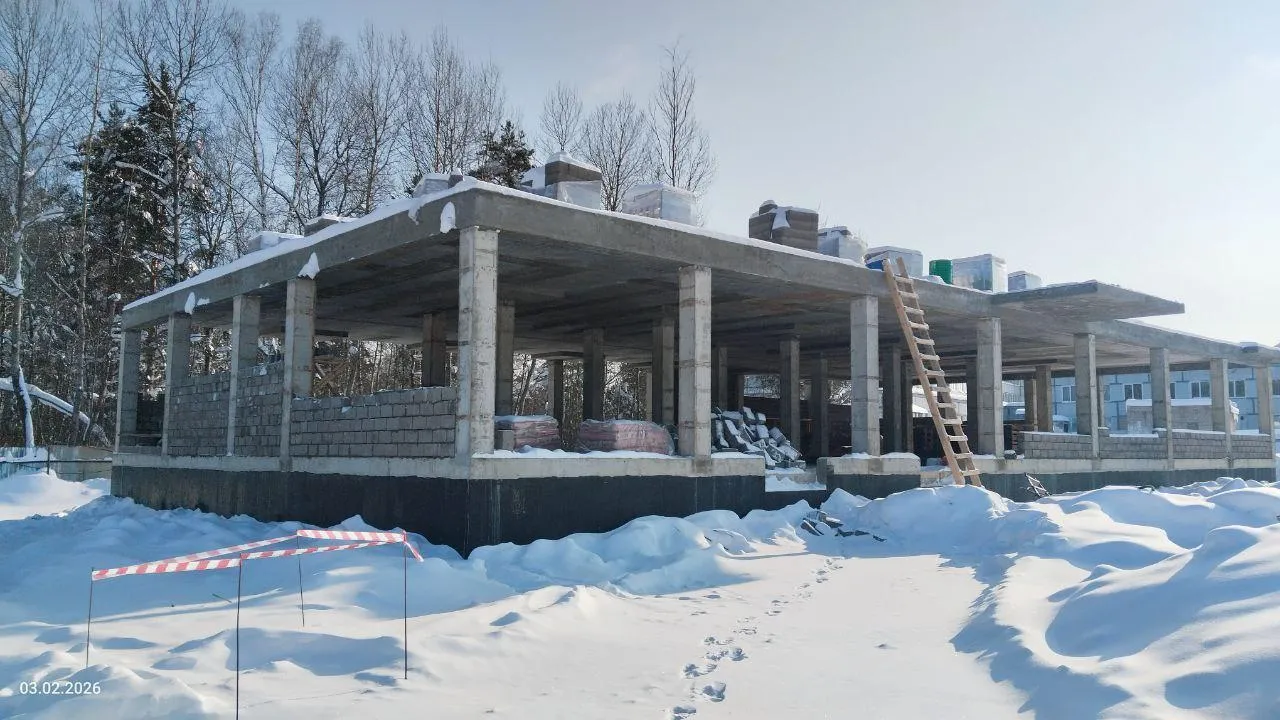 Параллельно идет строительство комплекса зданий хозяйственно-бытового назначения. Уже завершены монолитные работы, монтаж внутренних стен и перегородок выполнен наполовину. Общая строительная готовность составляет 25%.
