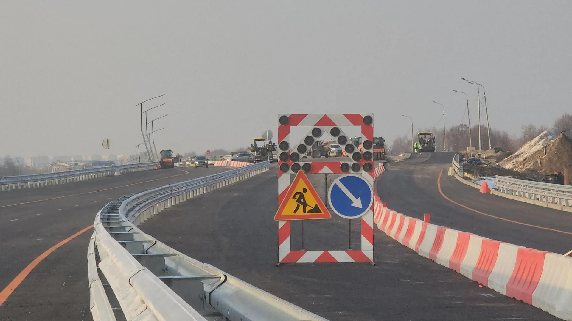 Сейчас на объекте ведутся завершающие работы: устанавливаются дорожные знаки, наносится разметка и проводится очистка дорожного полотна. Строительная техника постепенно покидает территорию.