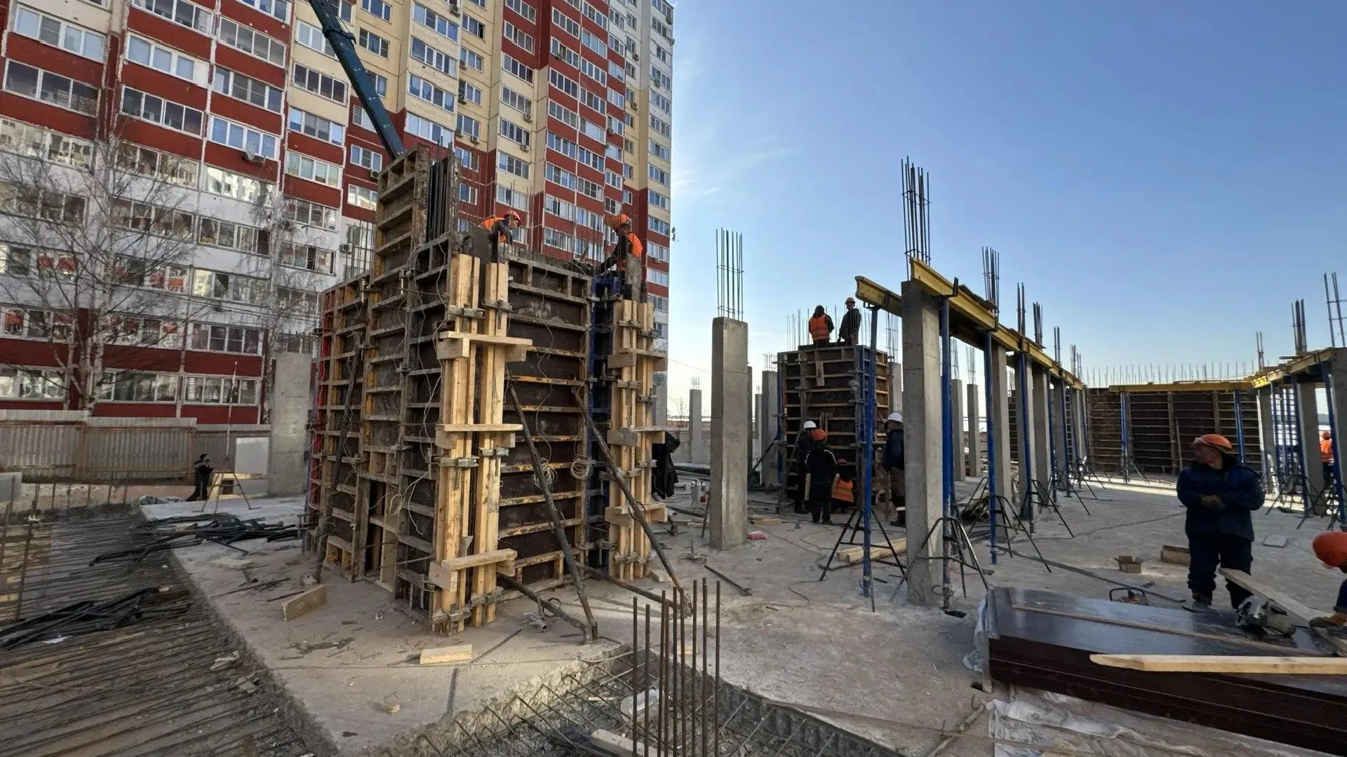 «На стройплощадке работают 35 человек и задействовано 5 единиц техники. На первом участке ведется устройство стен первого этажа, на втором — устройство фундаментной плиты, на третьем — расчистка территории от строительного мусора после демонтажа аварийного здания», — уточнил министр строительного комплекса региона Александр Туровский.